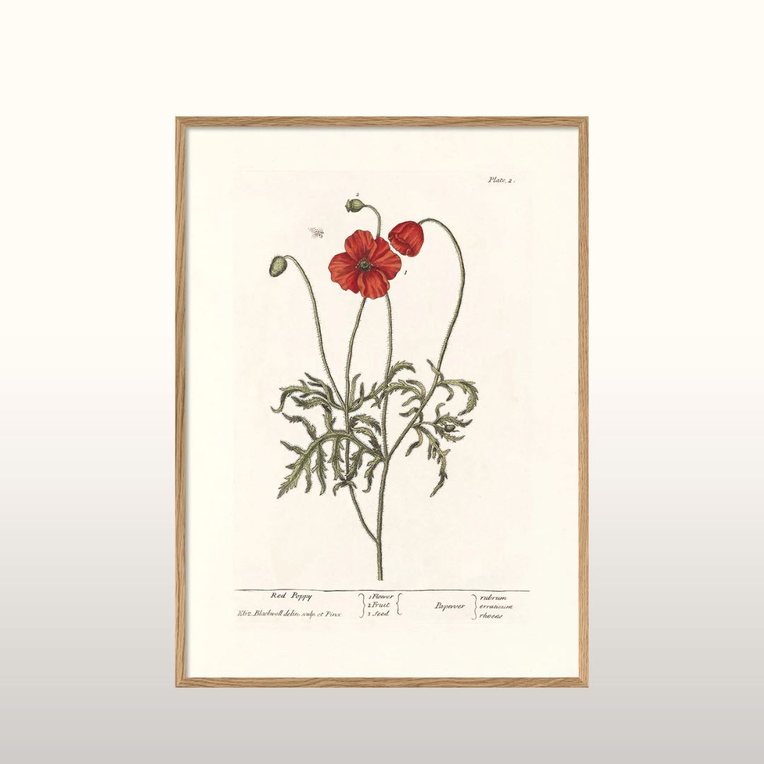 A lovely vintage print of the gorgeous red poppy.   Pair up with the lovely white poppy for a gorgeous duo in your kitchen, living room or home office.  Framed in a neutral white oak, these prints are very easy on the eye and add attractive vintage chic to your home.