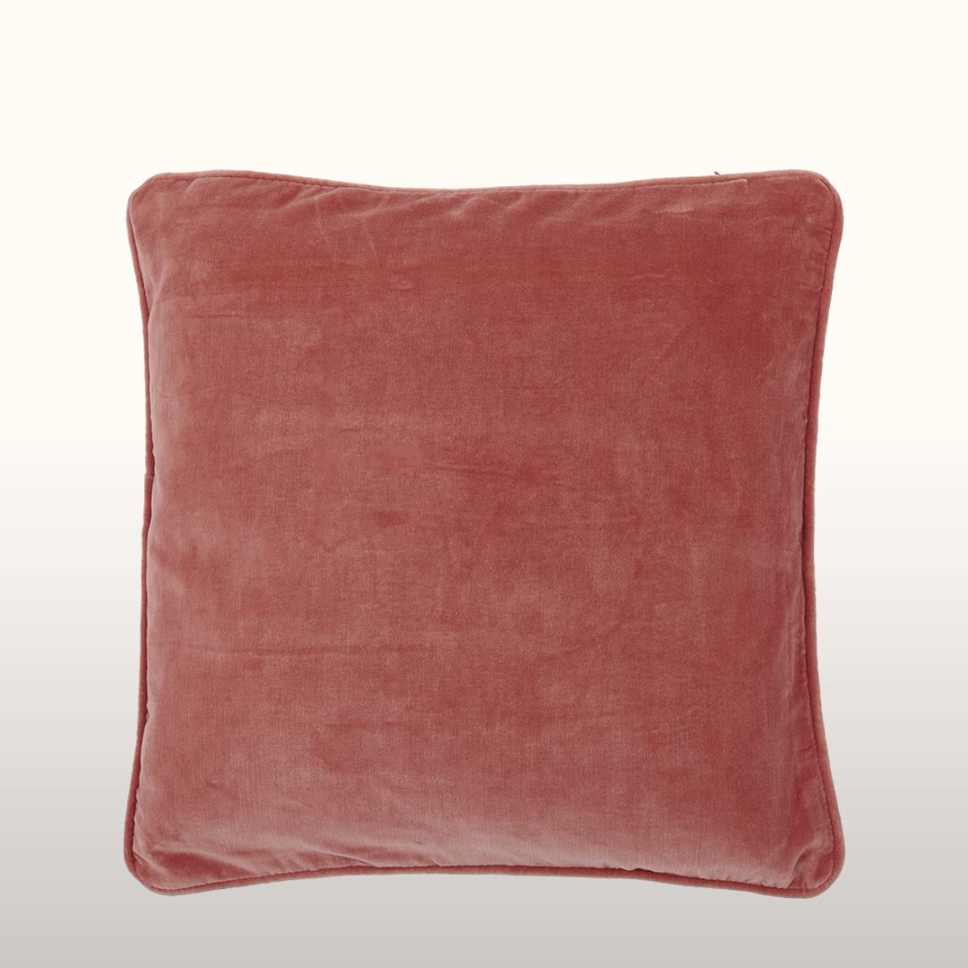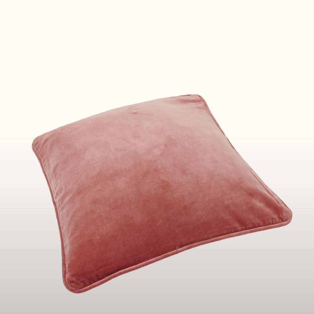 This soft and pretty rose coloured cushion is a lovely addition to your sofa. The plump feather inner combined with the soft low pile velvet make for the perfect throw cushion for sofas and armchairs and will work excellently layered with rectangular and oblong cushions. Matching coloured piping creates a harmonised finish.