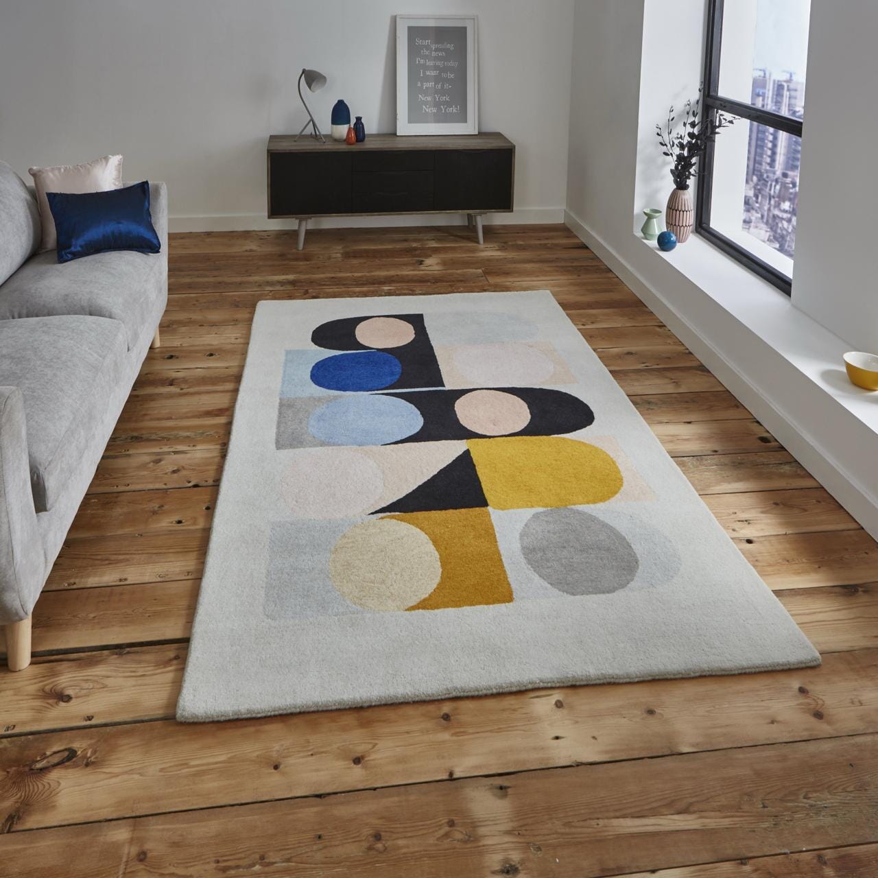 Notre magnifique tapis GrayE est un design original avec de fortes références au travail de la créatrice irlandaise du milieu du siècle, Eileen Gray. Encore une fois, ce tapis fonctionne extrêmement bien avec les meubles du milieu du siècle et les motifs jaunes et bleus sont très tendance.