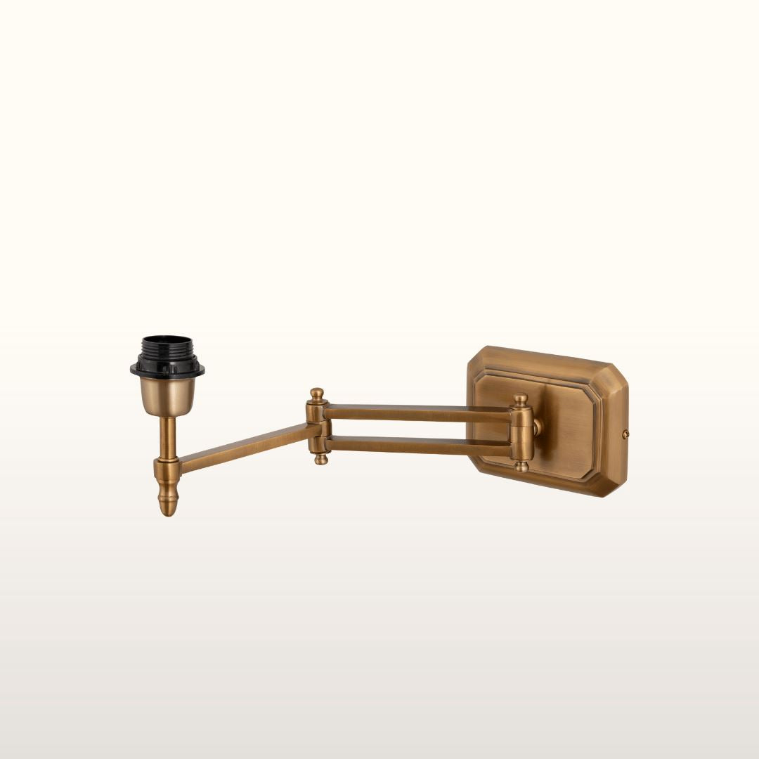 This beautiful extendable wall light is part of the exclusive Oriana B range. Designed by Oriana B, this wall light has an extendable brass arm fixed to a rectangular brass plate and topped with a decorative green pleated lampshade. The brass lamp has a hyper mobile arm which means it will sit against the wall when not in use and pull out some distance from the wall making it the perfect bedside or over desk wall lamp.