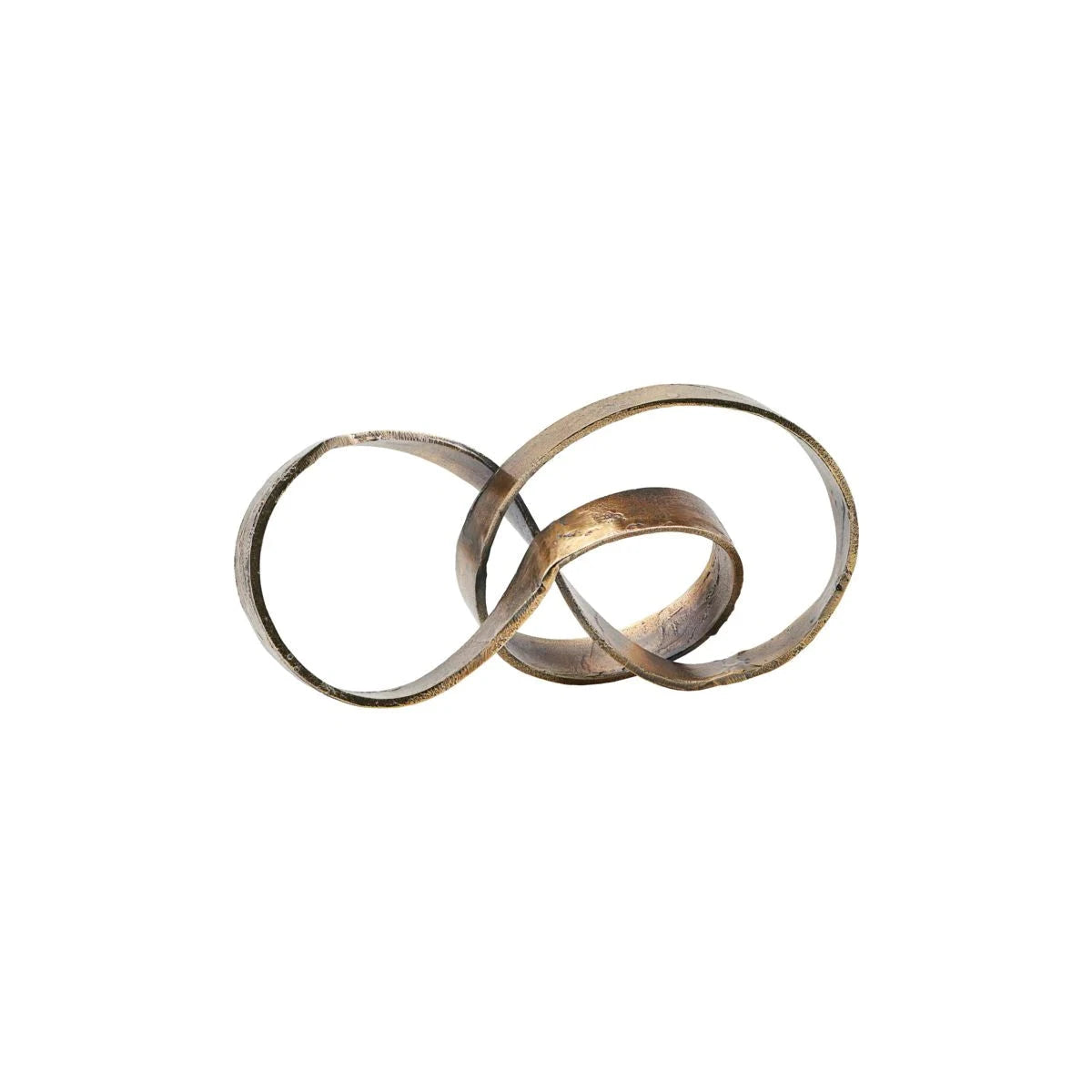 La sculpture infini en laiton mesure 40 cm de largeur, 13 cm de hauteur et 19 cm de profondeur. Il est en aluminium et doit être nettoyé avec un chiffon humide.