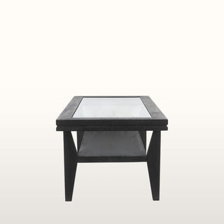 One of our original designs, this handsome black glass coffee table is the perfect completion piece for your living room. We designed this piece to work really well with full size sofas that go straight to the floor as the design provides a good contrast to a fabric or leather sofa base. The removable glass insert provides a look through to the handy shelf below allowing for books or other ornaments to be beautifully arranged but still ensuring you have lots of table top space! The edges of this table have a deep groove that matches with our Inlay cabinet collection.