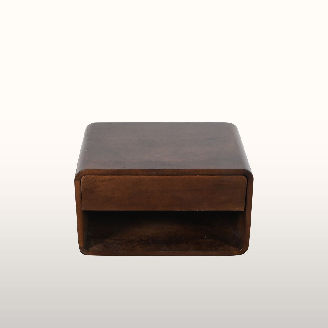 This wall hanging bedside table is a treat for a homeowner looking for clean lines and an elegant design in their bedroom.  It's perfectly proportioned to provide enough table space for a small lamp, a book and a glass of water.  Extra books can be stored beneath an in-built drawer which is ideal for keeping all the bits and bobs that make for a good night's sleep.