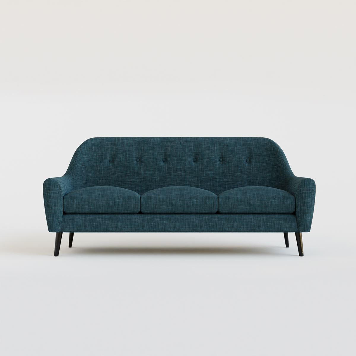 Ce magnifique canapé inspiré des années 1950 a tout pour plaire : un magnifique tissu en velours vert, une forme incurvée douce, des pieds joliment tournés, des coussins confortables et un joli dossier boutonné. Les proportions de ce canapé lui confèrent une ambiance chaleureuse et décontractée, mais avec beaucoup de style. Le dossier plus haut permet de reposer facilement votre tête et les accoudoirs bas sont parfaits si vous souhaitez vous étirer. Ce canapé fait main est conçu pour injecter des doses égales de douceur et de confort directement dans votre salon !