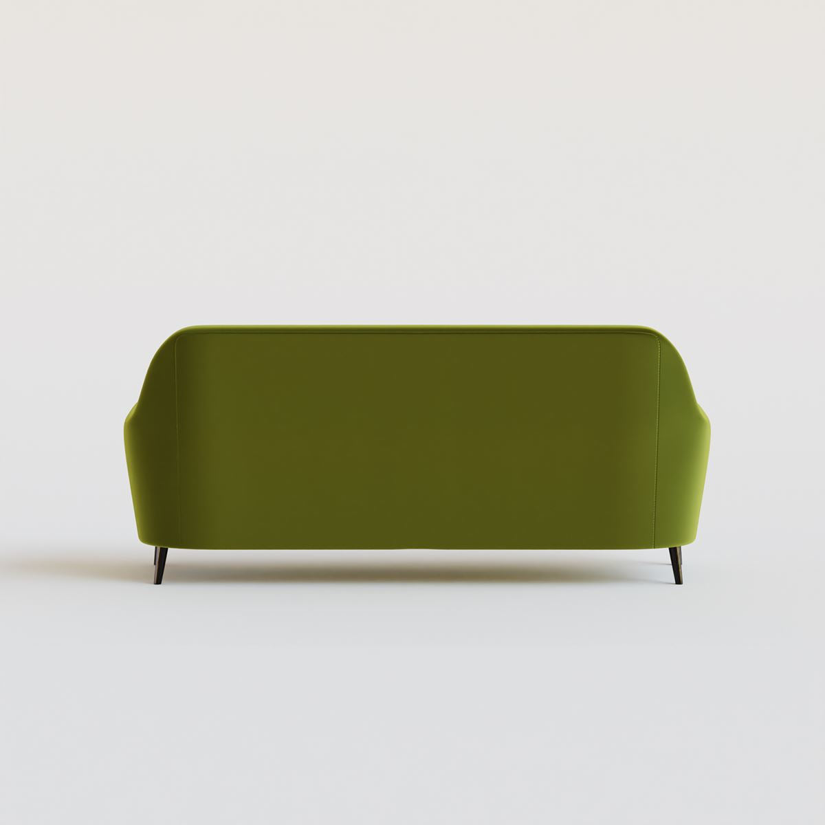 Ce magnifique canapé inspiré des années 1950 a tout pour plaire : un magnifique tissu en velours vert, une forme incurvée douce, des pieds joliment tournés, des coussins confortables et un joli dossier boutonné. Les proportions de ce canapé lui confèrent une ambiance chaleureuse et décontractée, mais avec beaucoup de style. Le dossier plus haut permet de reposer facilement votre tête et les accoudoirs bas sont parfaits si vous souhaitez vous étirer. Ce canapé fait main est conçu pour injecter des doses égales de douceur et de confort directement dans votre salon !