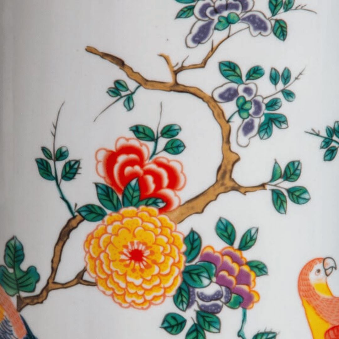 Add a touch of pretty floral decoration to your hallway! This unusual and eye catching ceramic umbrella stand will fit neatly into a corner in your hall and provide a beautiful focal point for storing umbrellas, walking sticks and even hurleys! The design features birds and flowers and is most certainly a piece for homes with a love of the botanic.