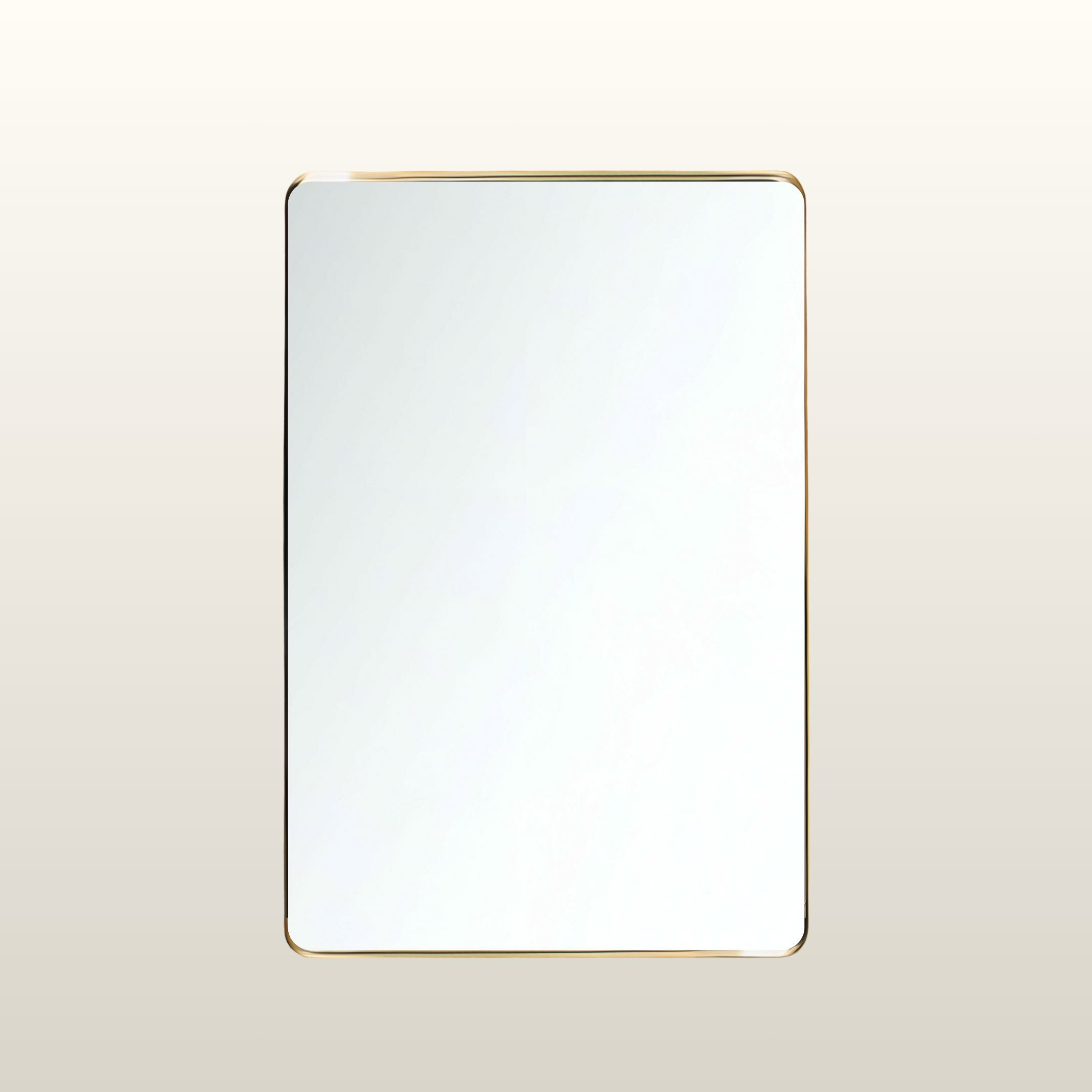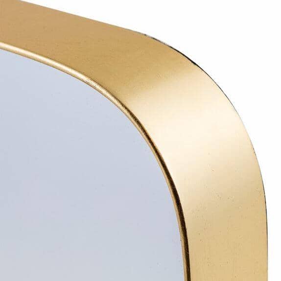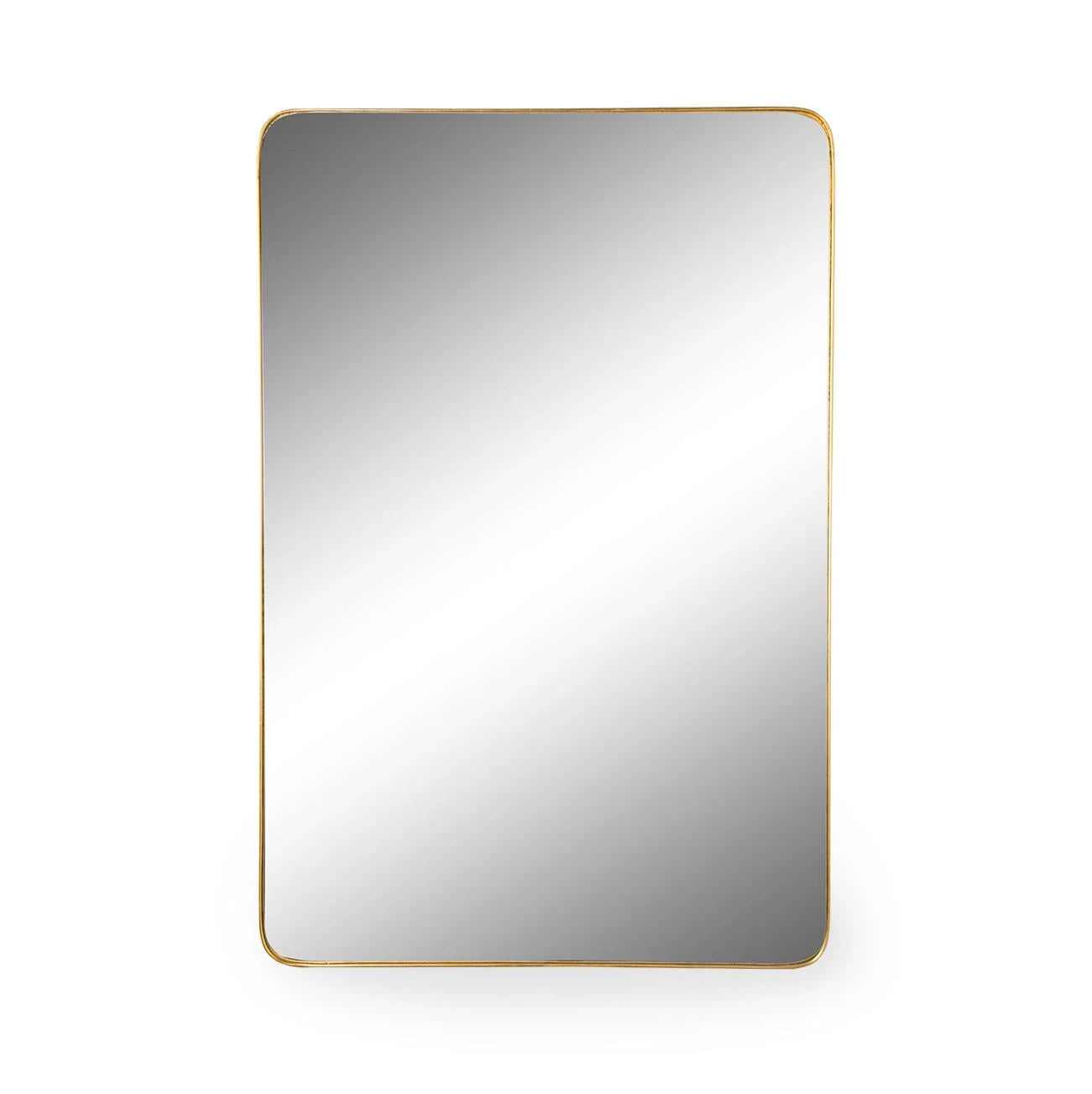 La forme rectangulaire du miroir est complétée par un cadre doré simple mais élégant qui ajoute une touche de glamour au design global. Les bords arrondis du cadre confèrent au miroir un aspect doux et délicat, ce qui en fait un complément parfait à tout décor de maison moderne ou contemporain.