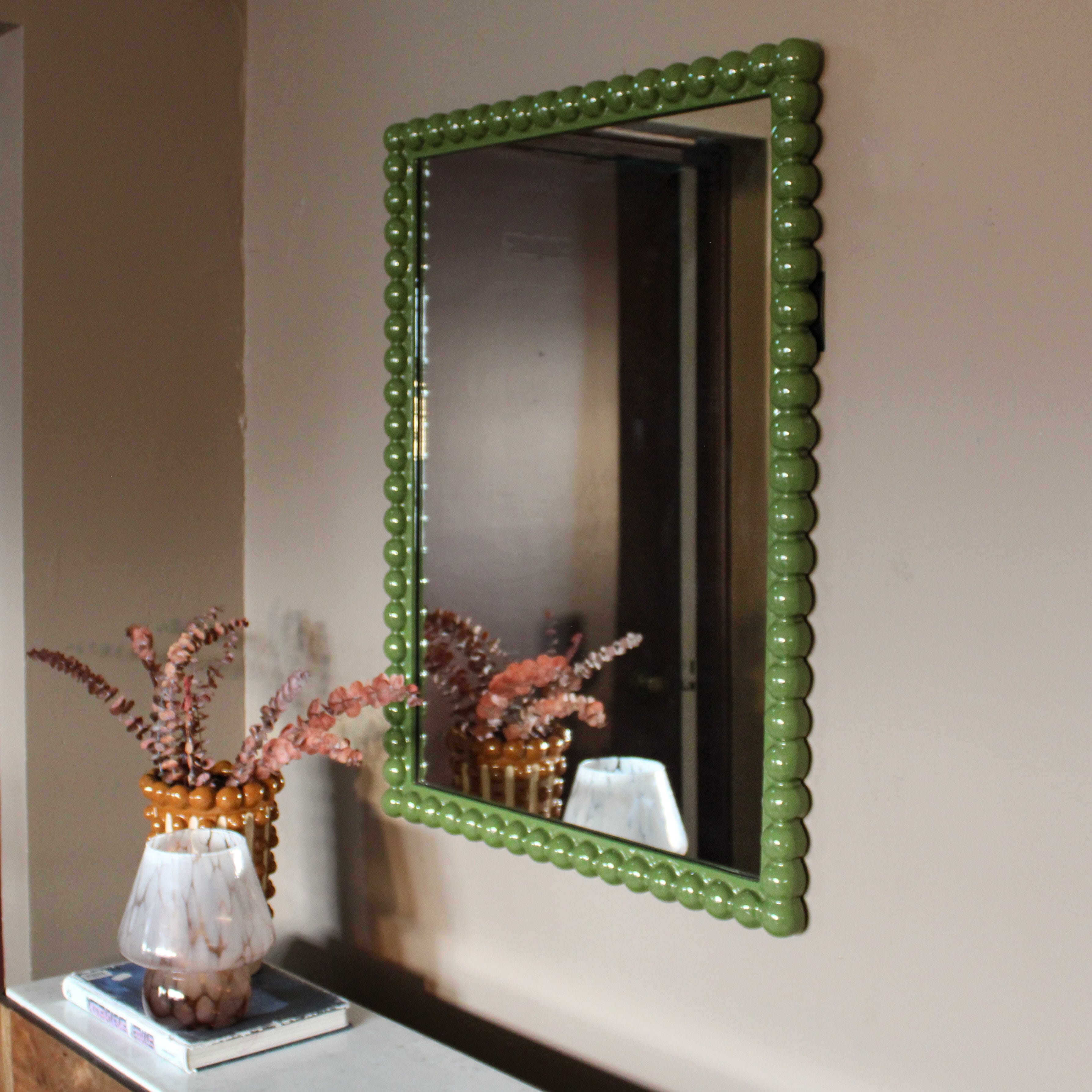 This fabulous rectangular bobbin mirror in green is a gorgeously creative addition to your home. The stunning silhouette of the bobbin frame makes it really stand out from the crowd and we could absolutely imagine this mirror pared with a fabulous floral wall paper in a gorgeous guest bathroom. This is a mirror that is going to bring the colour and organic shapes of outside right into your home.