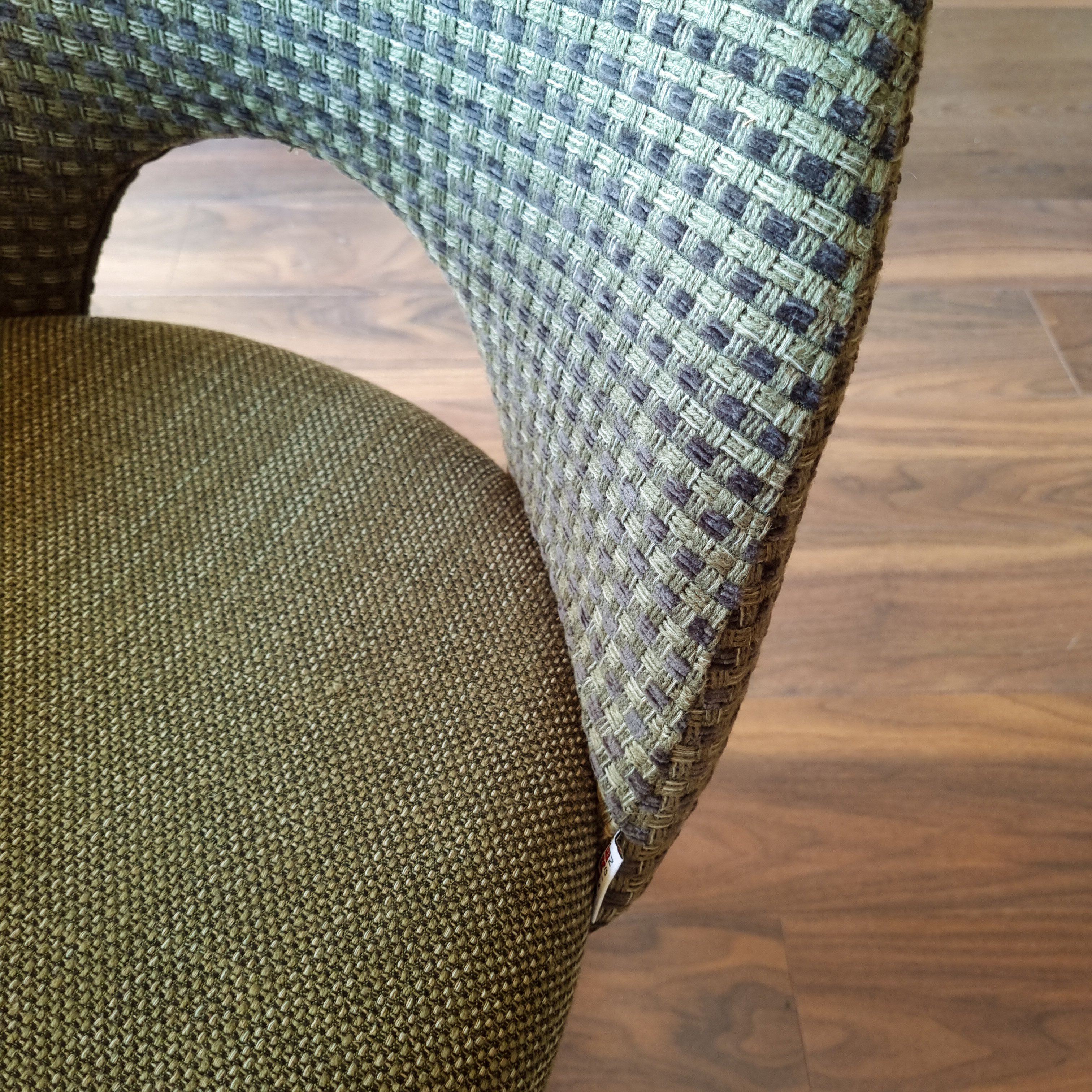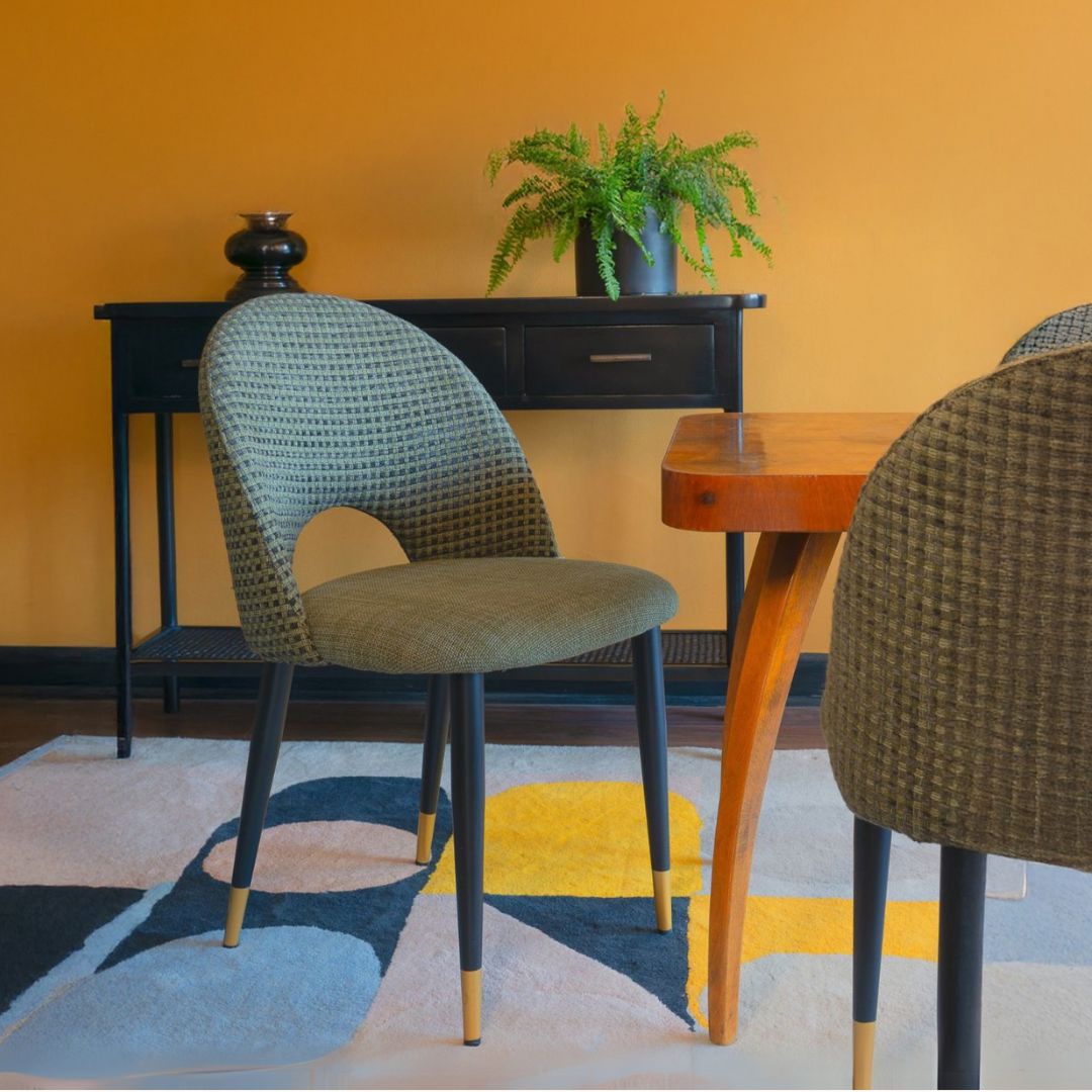Nous aimons une bonne chaise de salle à manger confortable et c'est en effet une chaise élégante et confortable qui vous permettra de profiter de nombreux longs déjeuners. Avec un siège rembourré en tissu tissé contrastant et une forme de coquille de palourde, cette chaise de salle à manger repose sur des pieds à pointes en or noir.