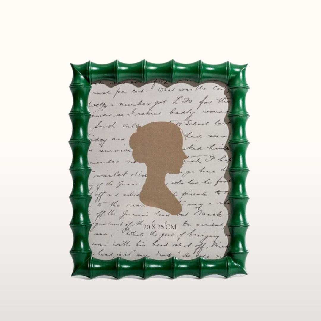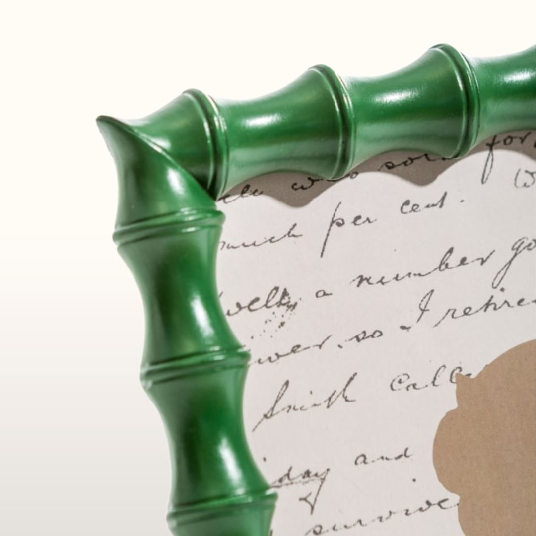 This is a large and very striking photo frame with a gorgeous bamboo shaped surround in a rich warm green.  Add a beautiful photo of your loved one or loved ones and style up on a sideboard maybe with a vase and a lamp to create a nicely styled trio.