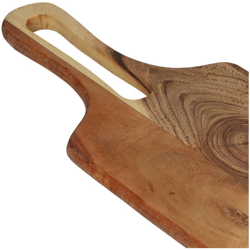 Rehaussez le décor de votre cuisine avec cette longue planche à découper en bois, conçue pour être à la fois élégante et pratique. Fabriqué à partir de bois chaleureux, il présente un long manche et de beaux bords carrés arrondis, parfaits pour la charcuterie, les dîners et la vaisselle. Son style intemporel combiné à sa polyvalence fonctionnelle en font le complément parfait à toute cuisine. La planche de 58 cm de long est idéale pour servir des plateaux de fromages ou du pain sans prendre trop de place sur un plateau de table.
