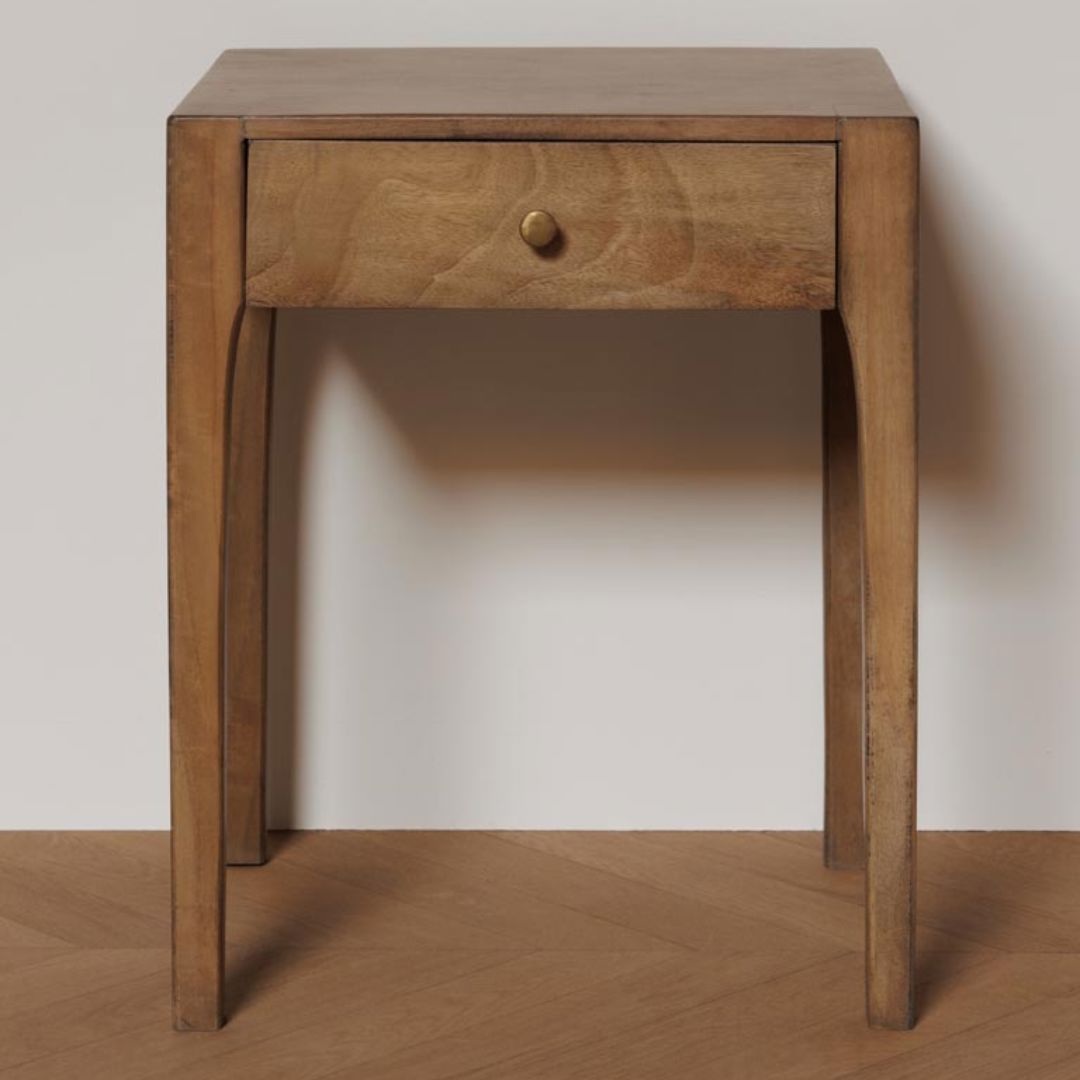 Elevate your bedroom with our Minimalist Single Drawer Bedside Table. The stylish French vibes conspire to create a sleek, pared-back design which add an air of luxury to any modern bedroom. The single drawer has a single restrained brass handle providing useful storage space which makes this table perfect for keeping your bedside essentials close at hand, adding both style and convenience to your space.