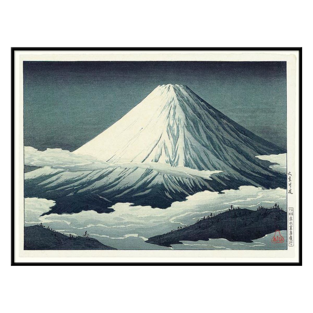 This iconic Japanese image is stunning yet calming piece to display in your home. Mount Fuji has been sacred since ancient times and the beautiful cone shape has inspired many of Japan's artists, but the best-known expression is probably Hokusai's series "36 Views of Mount Fuji". This print seeks to take inspiration from Hokusai's colour palette rendering it a modern tribute to a classic. It would look fantastic in a cool toned room or cut across warm paint colours beautifully.