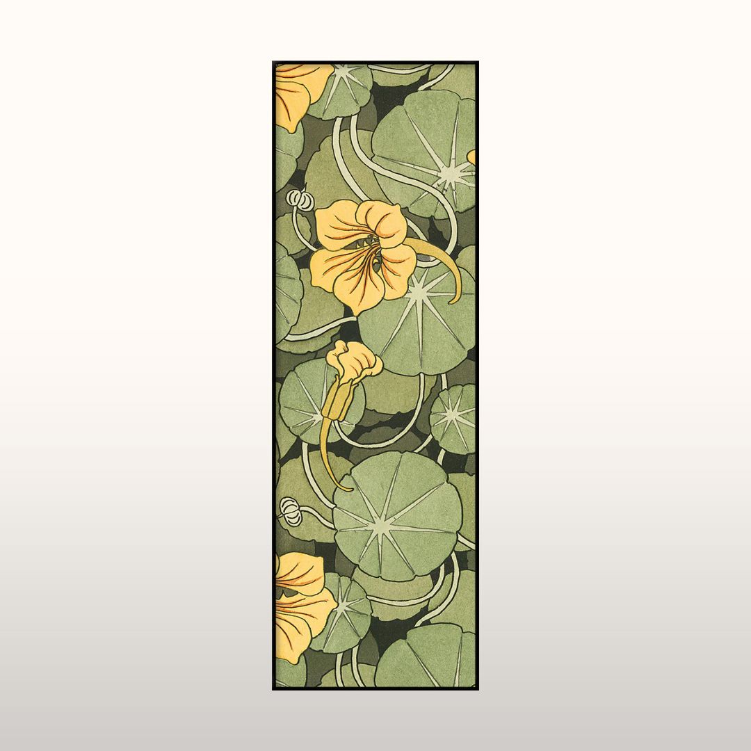 We think of this lovely print like a panel of gorgeous wallpaper that has been framed and is now the ideal size for a hallway or through space where you need something to complete the space but not too much.  The ideal dressing piece!  We love the organic shaped nasturtium leaves and the pretty yellow flowers which conspire to produce a very charming look.