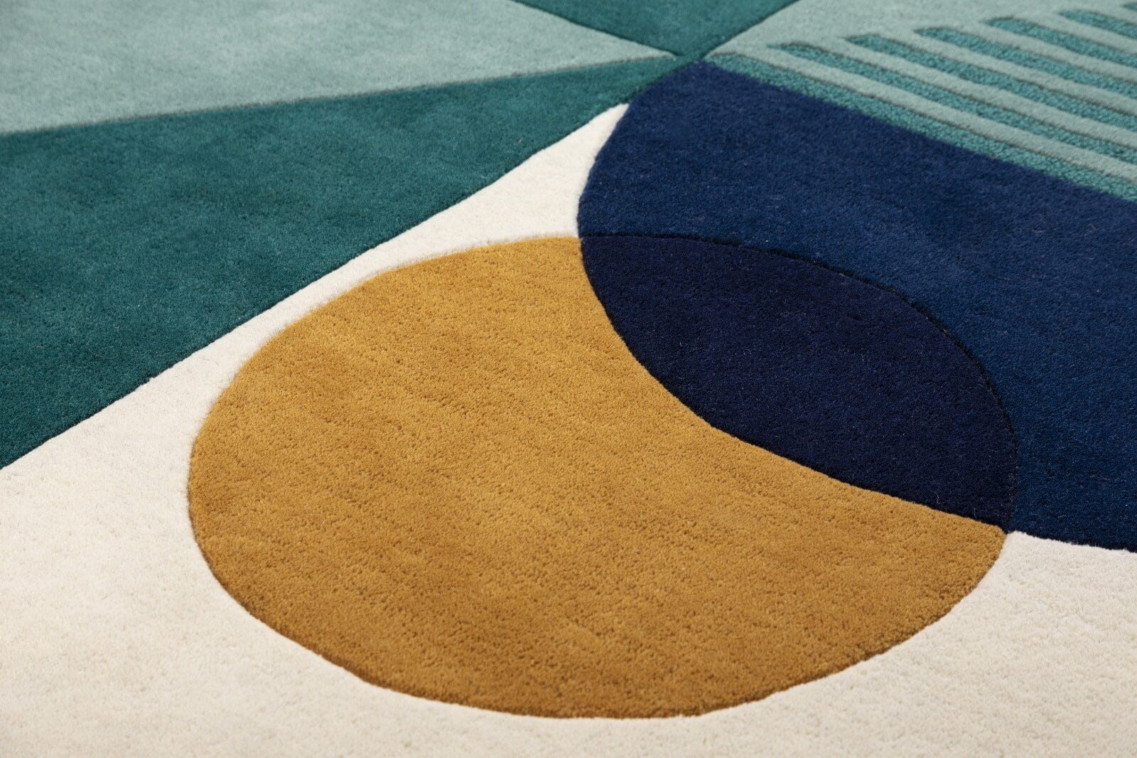 Ce tapis présente un motif distinct et audacieux de formes géométriques abstraites, ce qui le rend parfait comme pièce maîtresse dans les intérieurs minimalistes et épurés. Les poils épais le rendent parfait pour les salons occupés, tandis que les nuances sombres du bleu marine et du bleu sarcelle cacheront des années d'usure ! Nous avons pu voir ce tapis s'associer à merveille avec une palette tonale d'ocre et de beige, agissant comme une pièce accrocheuse qu'il est !
