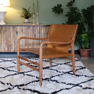 Teak Leather Lounge Chair | Cognac