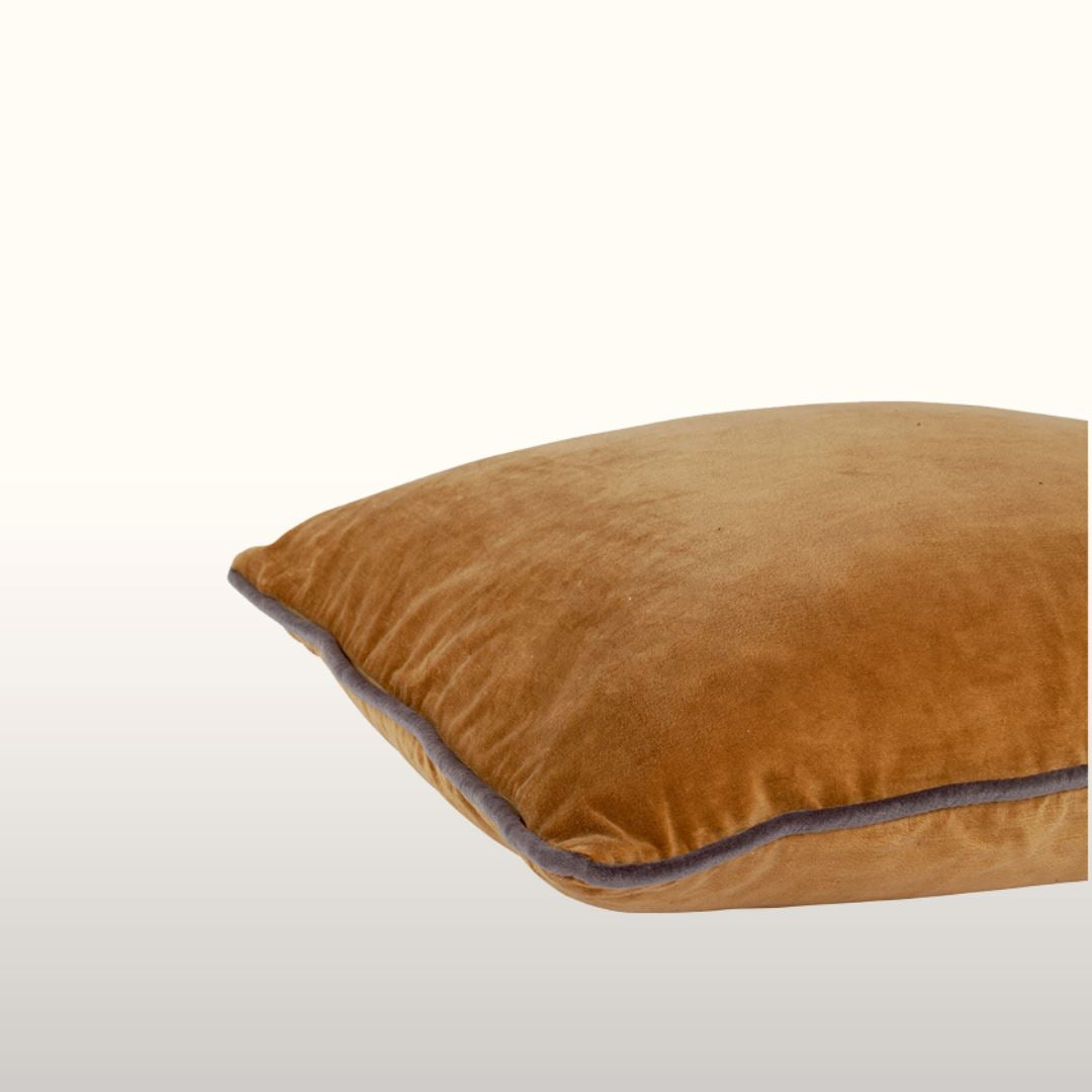 A rich hued ochre mustard velvet cushion with a lovely warm colour, contrasting piping and in an excellent sofa size of 45cmx45cm.  Will pair extremely well with our 60cmx60cm velvet cushions and our baguette cushions which are 30cm60cm.  These soft cushions are provided with a deep filled feather filler