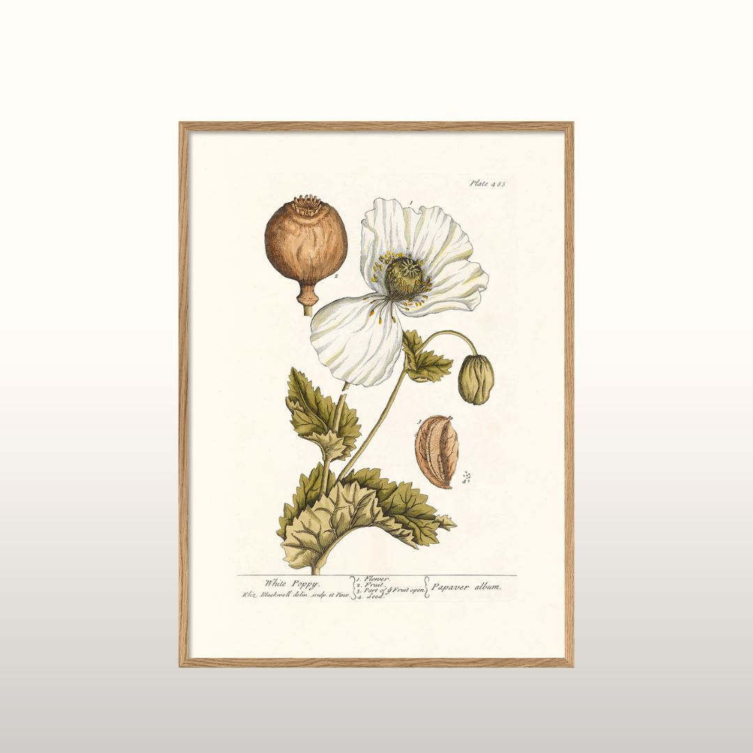 This lovely archival print of the much rarer white poppy is a lovely addition to a kitchen, dining room or even home office.  We love the detailed drawing and charming composition that makes this print a natural winner.  Pair it up with the red poppy for a floral inspired duo.