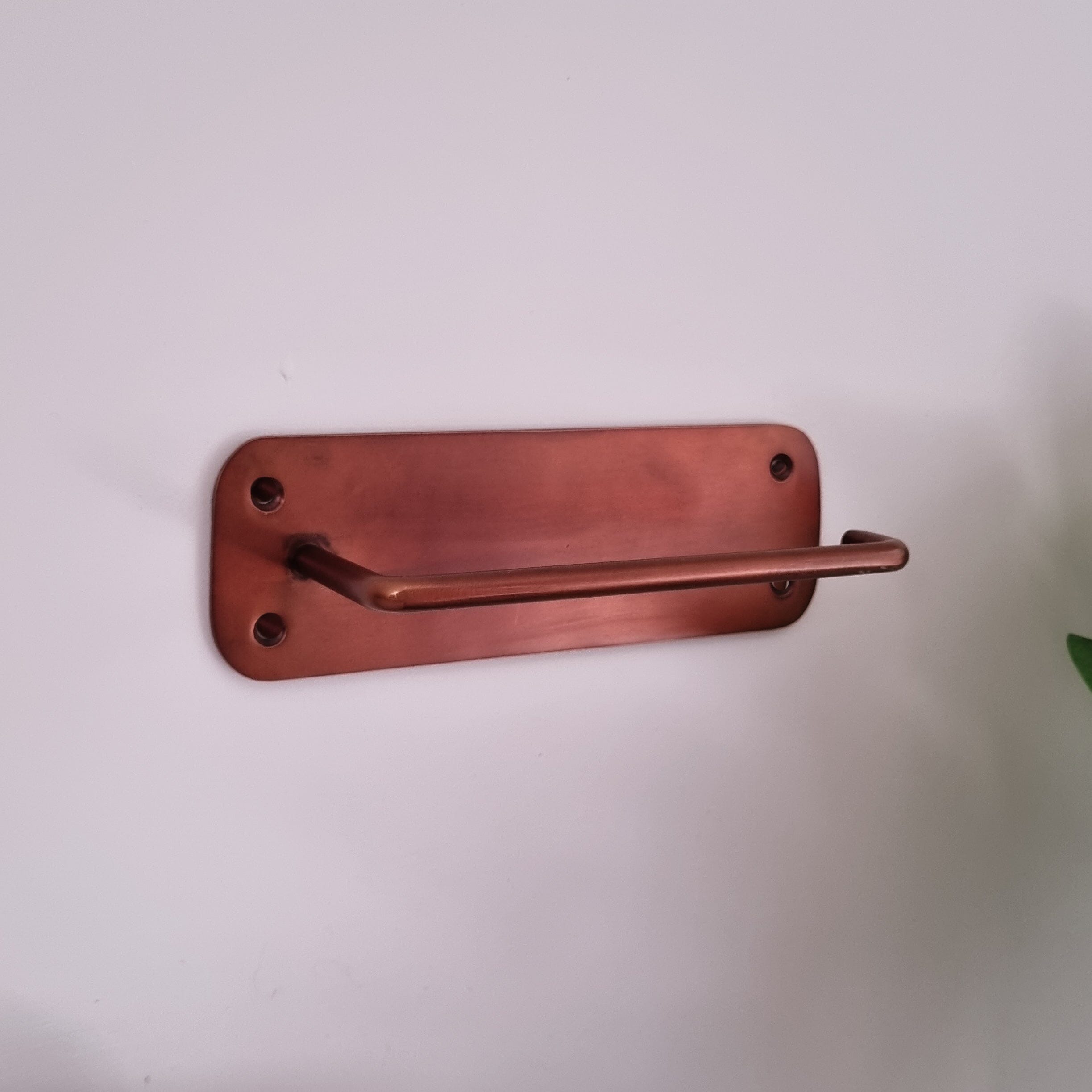 This toilet roll holder is a neat and functional solution to one of life's most boring design conundrums! This design of bathroom accessories is the perfect blend of cool modern design and warm and inviting decor. Made from tough and easy to clean stainless steel, this simple yet effective design packs quite a punch! We love the browned brass colour that makes this piece perfect for warming up a bathroom. It pairs excellently with tonal shades like pink, terracotta and peach but would also work as an accent in monochrome or grey spaces. Pair with the matching hook.