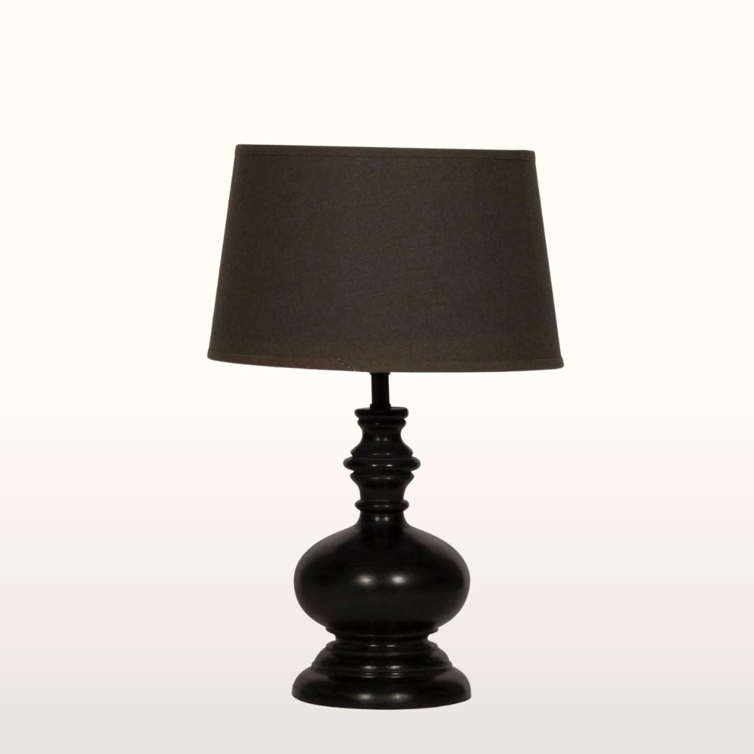 This is a very sweet little lamp with a beautiful black shaped base and dark charcoal shade. This lamp is one of those perfect pieces ideal for a small space or as a bedside table lamp and which will always fit somewhere! We particularly like the contrast of the shapely base in a low gloss finish with the texture of the charcoal linen lampshade.