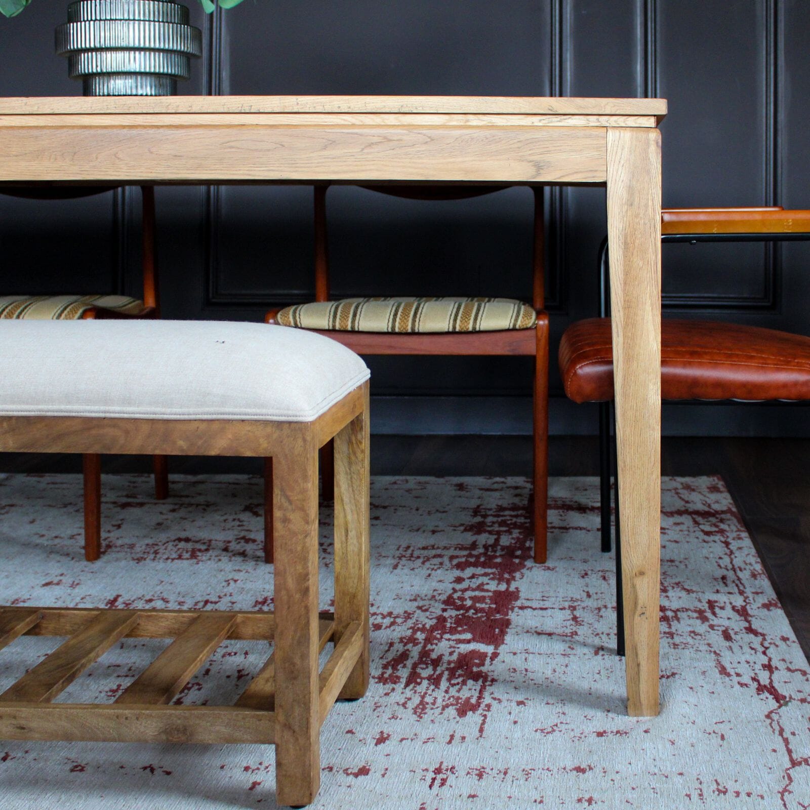 This is truly beautiful dining table, the kind of dining table that your friends will admire and you will cherish every time you sit down to eat a meal. This large 8 seater table has a stunning checkerboard designed top which sits above a four legged pedestal base with a stylish shadow gap between the two. The table has an oak finish and is warm and honeyed in hue. This is a dining table that will take you from relaxed lunch to dressy dinner in one easy step!