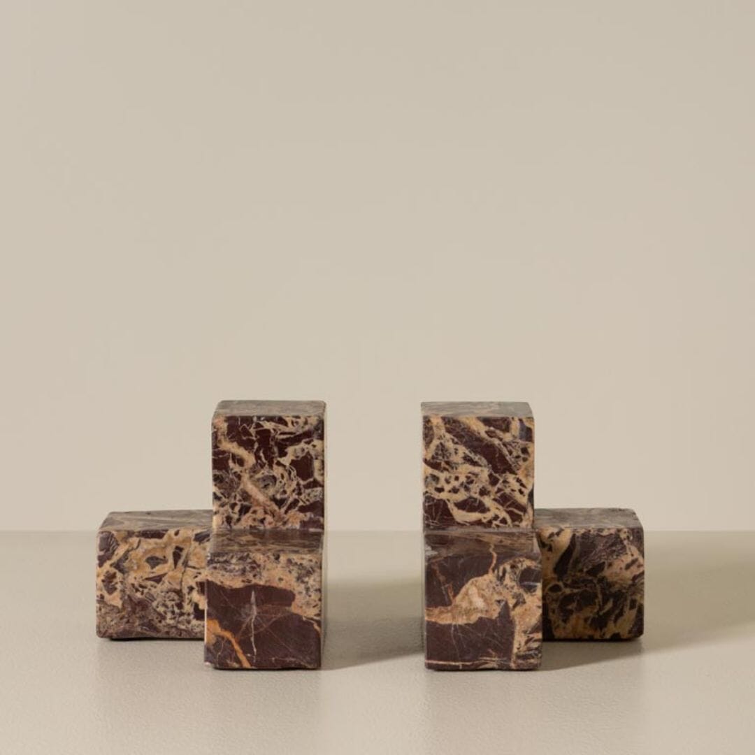 For the cubist lover, these fabulous bookends in a veined cherry marble are the ultimate shelf accompaniment. Add them to your shelf or sideboard to create a gorgeous tableau with a few books. The deep burgundy and cream colours are warm and engaging and will add instant visual appeal and a considered styling approach.