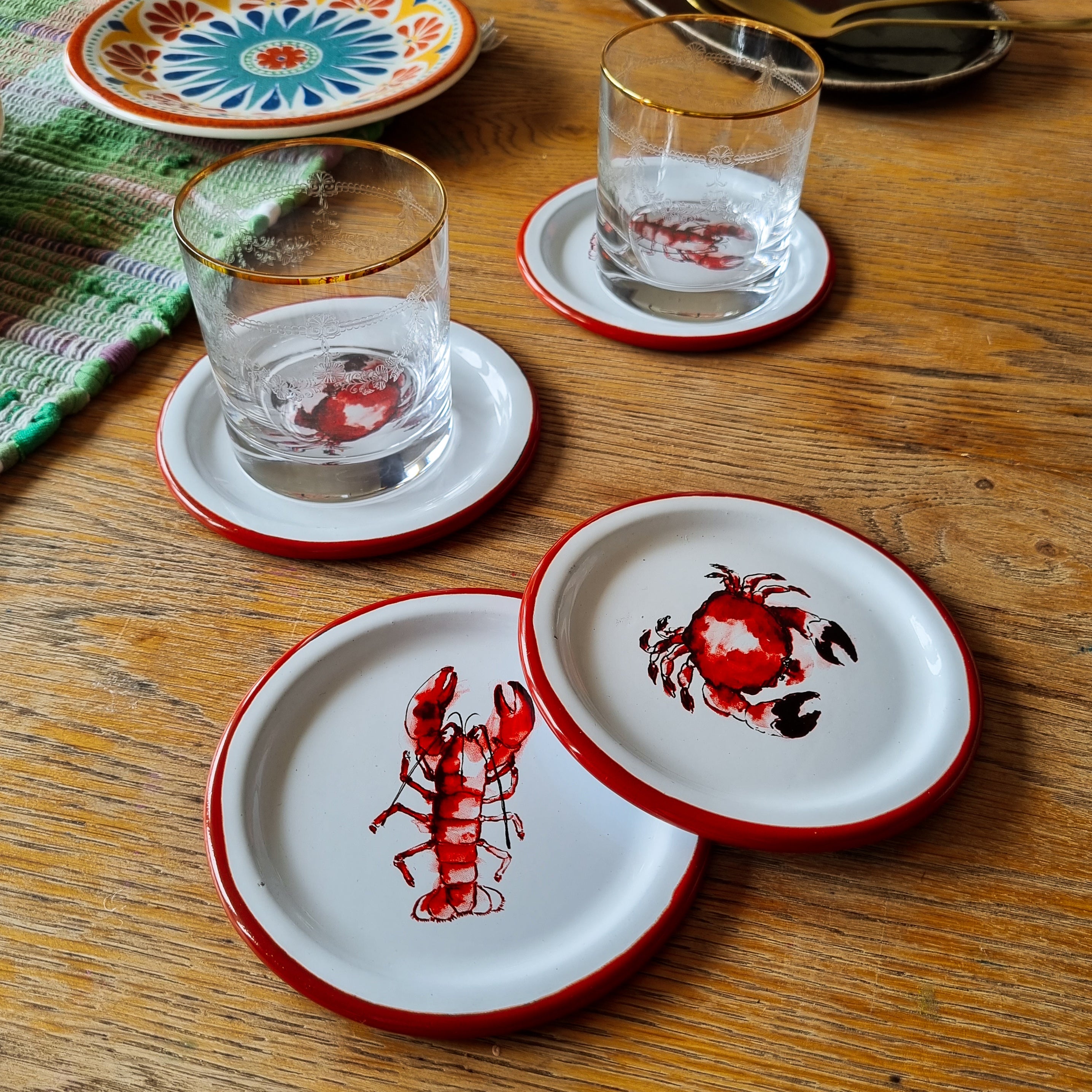 Yet another Oriana B crab and lobster combo you say? Don't mind if we do! This time in a delightful coaster set made from enamel coated metal. We love the two duos on these generously proportioned coasters, and the gorgeous water colour effect on the illustrations. These coasters are perfect for an al fresco fish dinner, or for the morning cup of coffee on your favourite armchair.