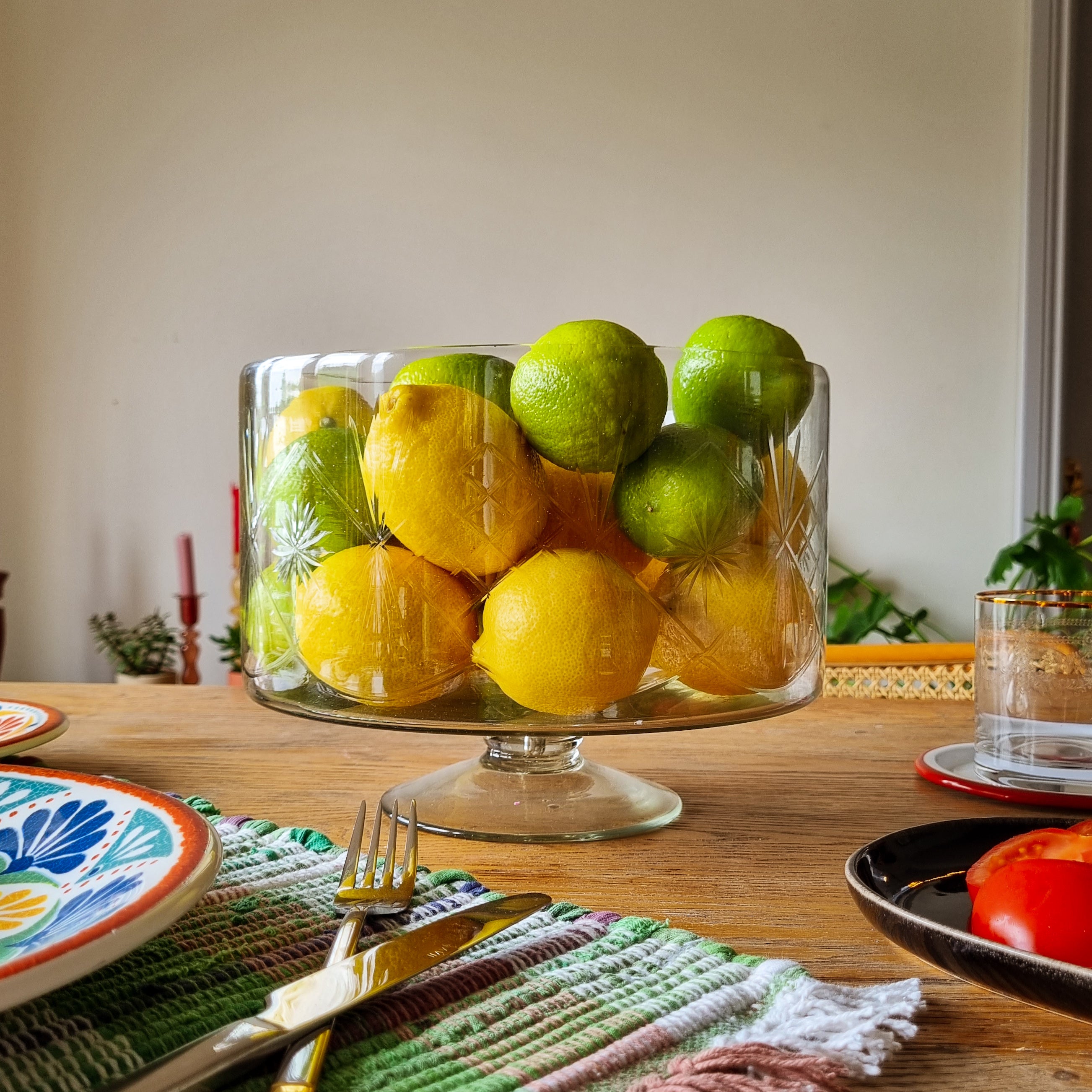 This serving bowl is a little piece of cottage core heaven! It is like something lifted directly from a vintage summer feast, we can see it filled with berry trifle taking pride of place on a gingham tablecloth, or better yet as a fruit bowl all year round so you can always show off this delightful piece! We love the cut glass ridges around the sides that will catch the light beautifully in sunny kitchens.
