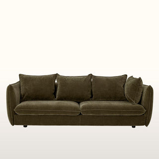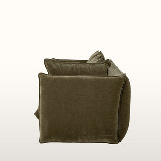 Our Green Contemporary Sofa is the perfect blend of modern luxury and comfort. Made with soft, delicious velvet in a dark, dusty green colour, this sofa is not only pleasing to the eye but also extremely comfortable. Four back cushions provide ample support while the elegant design adds a touch cool and unusual design to living spaces. Crafted with 50% polyester and 50% recycled polyester fabric for added sustainability. This sofa is available in a large three seater size of 228cm, perfect for busy homes and big families. This sofa will be ready to ship in 6-8 weeks.