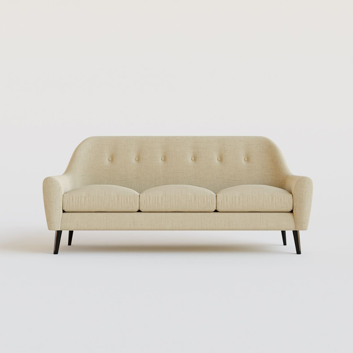 This beautiful 1950s inspired sofa has it all going on - gorgeous green velvet fabric, soft curved shape, beautifully turned legs, comfortable cushions and a lovely buttoned back.  The proportions of this sofa give it a lovely welcoming and relaxed vibe yet with plenty of style.  The higher back makes it easy to rest your head and the low profile arms are great if you want to stretch out.  This handmade sofa is designed to inject equal doses of the lusciousness and comfort right into your living room!