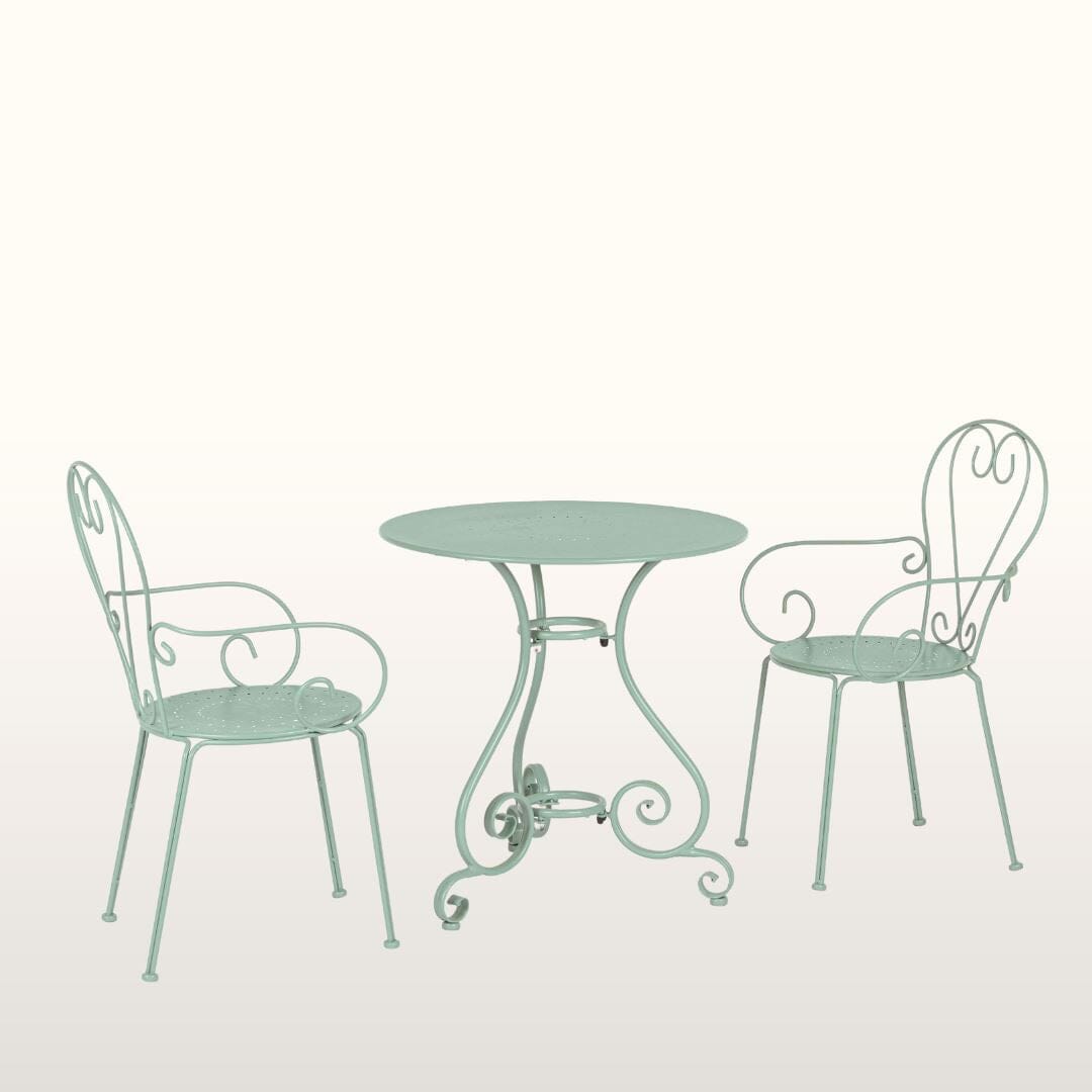 This ice blue garden bistro set is a pretty accent colour for flower heavy gardens, blending in with spring and summer blooms. We absolutely love the whimsical and botanically inspired design of the bistro set which makes it super pretty for a little coffee corner in the garden. This outdoor garden set includes one table and two chairs.