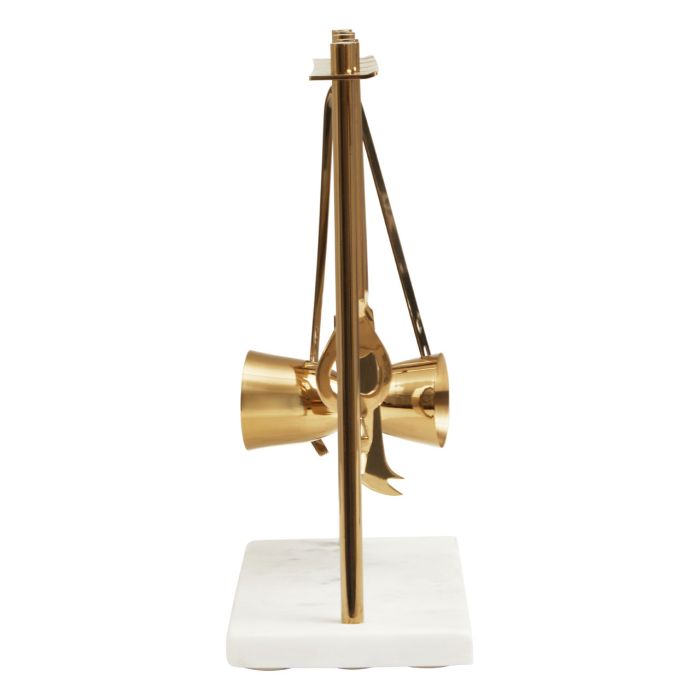 Bring the cocktail bar home with this stunning accessories set! This luxurious set is the perfect way to add some glamour to your evening tipple, not just a pretty face this set is packed with four bar essentials: a double measure cup, bottle opener, ice tongs and fruit knife. We love the look and feel of this piece made from hefty white marble and gold coloured metal, making it as beautiful as it is practical! This set would make the ideal gift for a budding barman or someone who is curating a trendy home bar. To avoid tarnishing the gold we would advise handwash only.