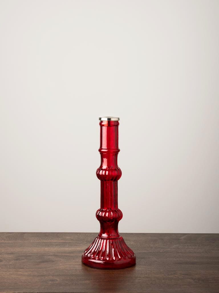 This fabulous candle holder is a bright and bold delight! It's long stature make for a bold statement on sideboards, dinner tables or coffee tables. The highly saturated red coloured glass and classically molded finish are a delightfully unexpected combination. Mix with the other pieces from this collection for a technicoloured display that really packs a punch! Pair with some of our colourful True Grace Dinner Candles for an extra burst of colour.