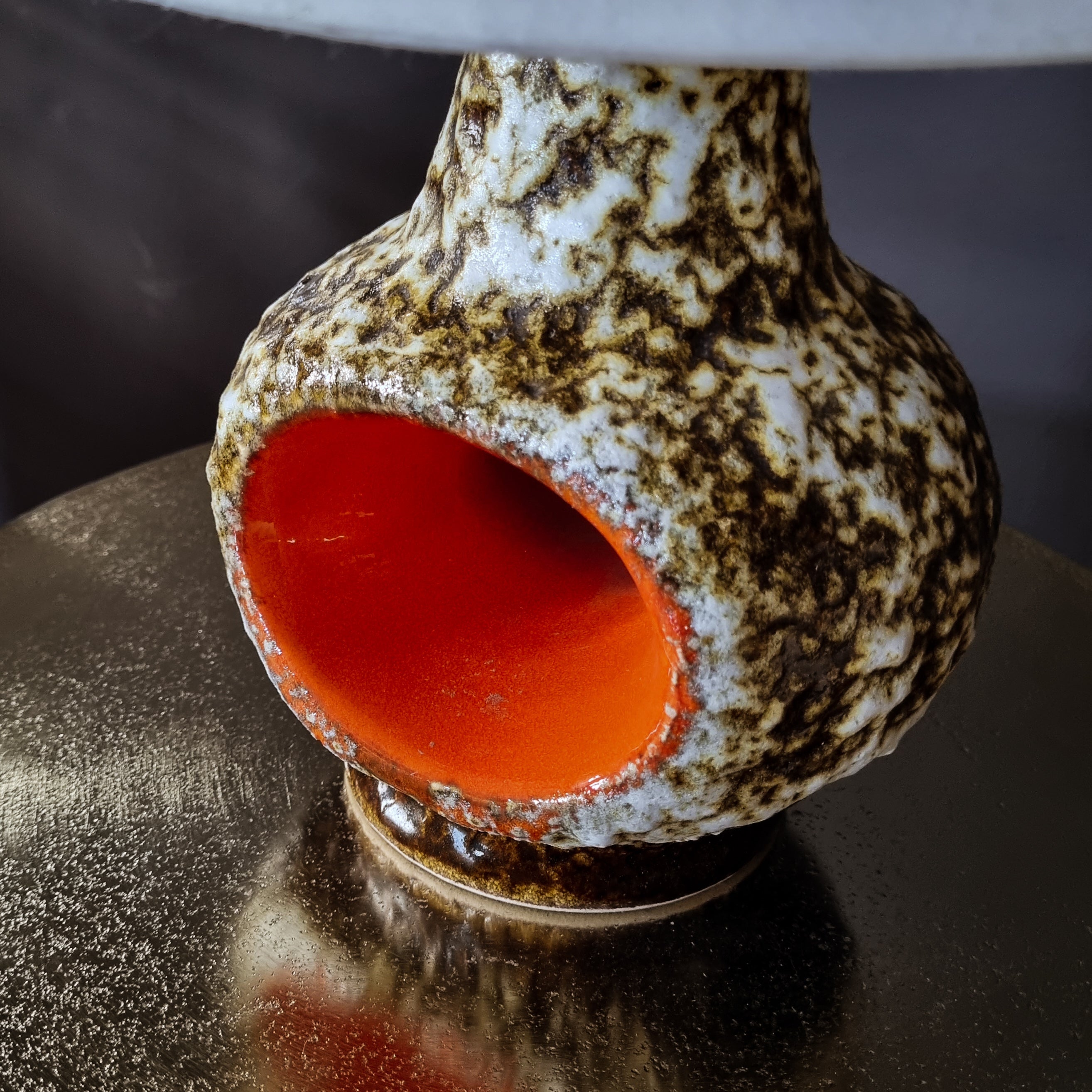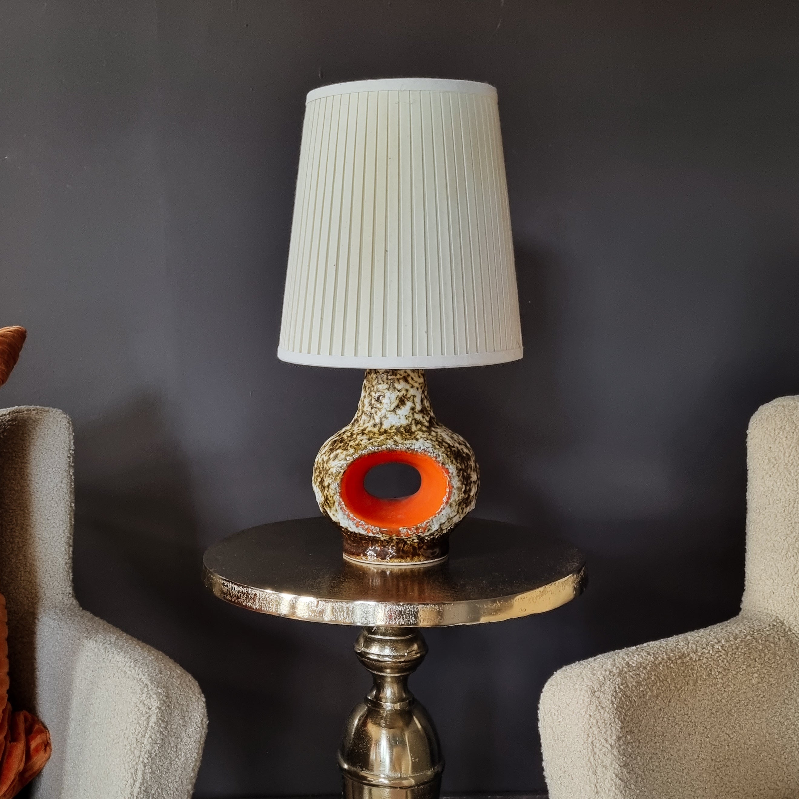 This is rather a lovely original mid century table lamp with a speckled base and a hollowed orange insert. Almost certainly the sort of lamp that you would see in a room and think - that's cool and unusual!