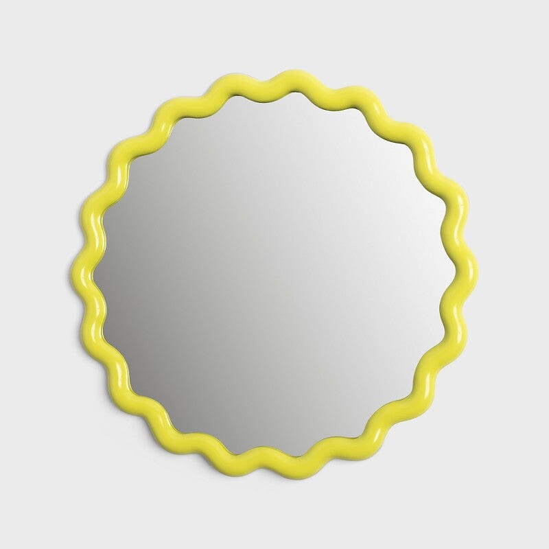 Looking for a mirror that's as bright and bold as you are? Check out this yellow round wavy mirror! It's the perfect way to add a pop of color and personality to any room in your home. Whether you're getting ready for work or just admiring your reflection, this mirror has got you covered. The wavy frame of this mirror is expertly designed to create a unique and eye-catching look that's sure to impress. And the round shape is a great way to soften the edges of a room and create a more welcoming environment. The wavy frame is bang on trend for bold and bright interiors. This yellow round wavy mirror is incredibly versatile and can be used in so many ways. Hang it on a gallery wall, use it as a feature mirror, or create a stunning focal point in your living room or bedroom. The possibilities are endless! So if you're looking for a homeware piece that's both stylish and functional, this yellow round wavy mirror is the perfect choice.