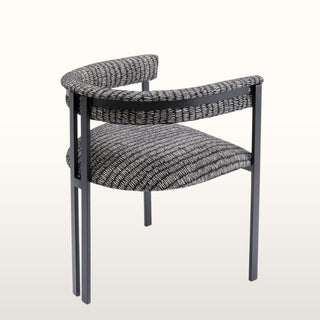 This stylish and contemporary chair is a really super dining chair and looks fabulous with a black dining table. The black and white upholstery contrasts really well with the slender black frame and is light to move around.  This is a very eye catching chair that is comfortable to boot and is an exceptionally stylish way to eat dinner!