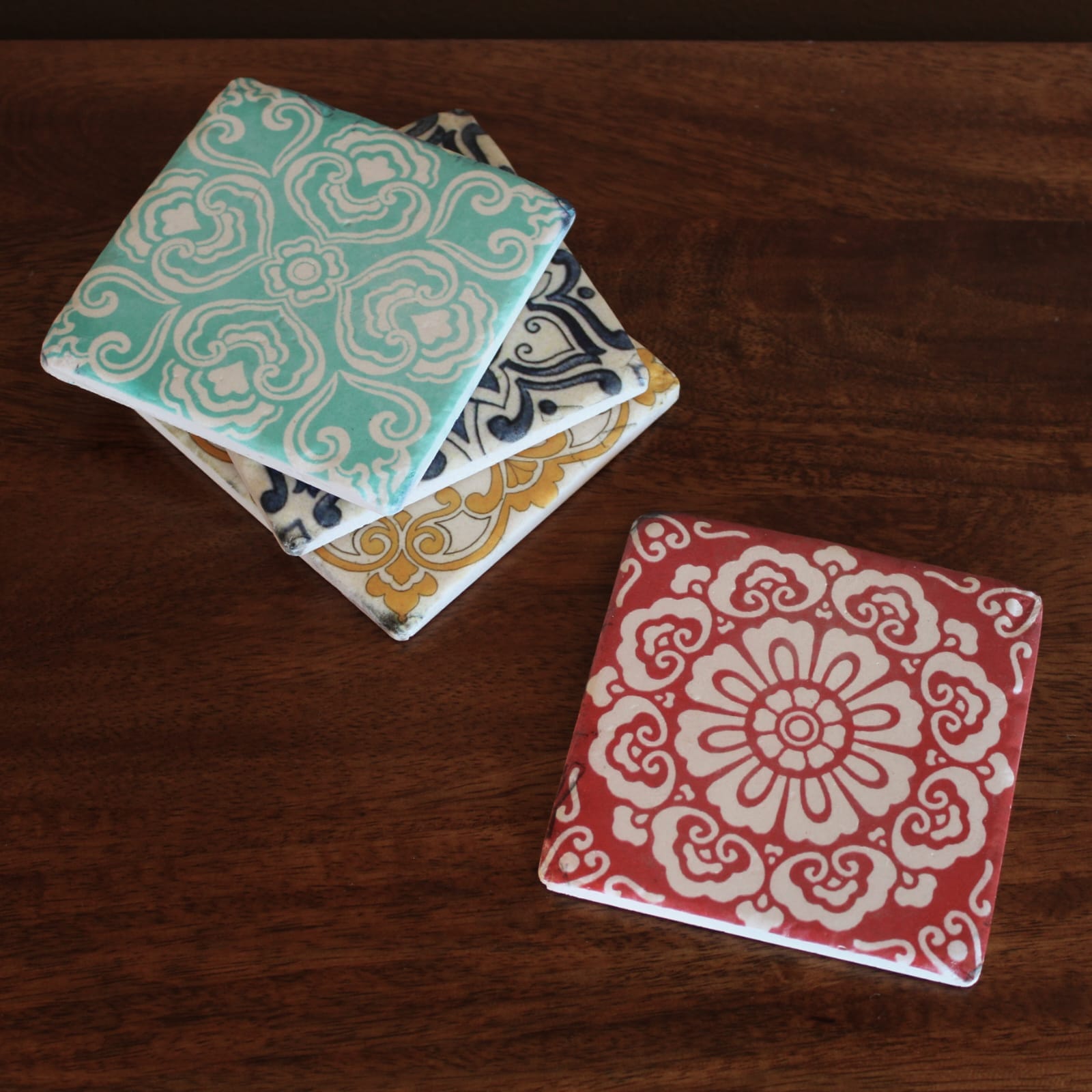 This is a really cute set of antique tile inspired coasters that will add a pop of colour to your kitchen or dining room table, not to mention providing all important table top protection! We are loving the 4 colourways and the antique finish which make them really great for indoor and outdoor use.