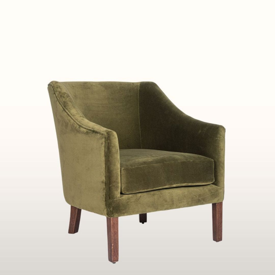 How we love green velvet and how we love slope arm armchairs!  So when it came to designing something fabulous, we had to incorporate all our loves into one place and this is the result.  It's a beautiful chair in a rich rust/burnt orange hue that will add just the right amount of warmth and interest to your living room, bedroom or kitchen.  These chairs are designed to sit in, relax and chat - an absolute favourite pastime of the OB girls!!