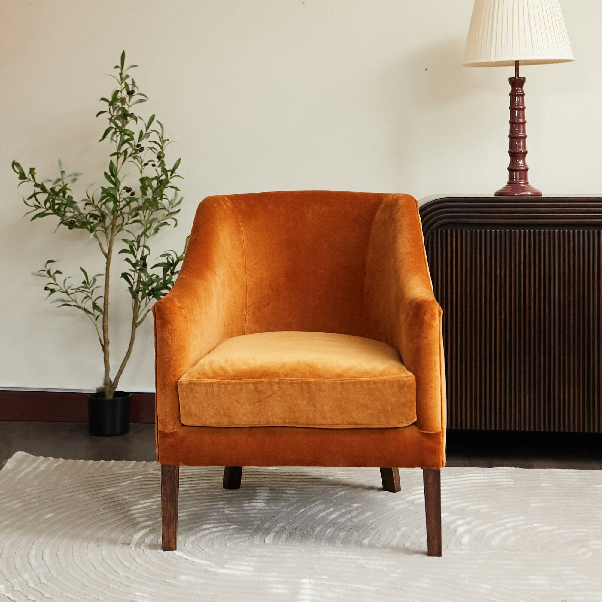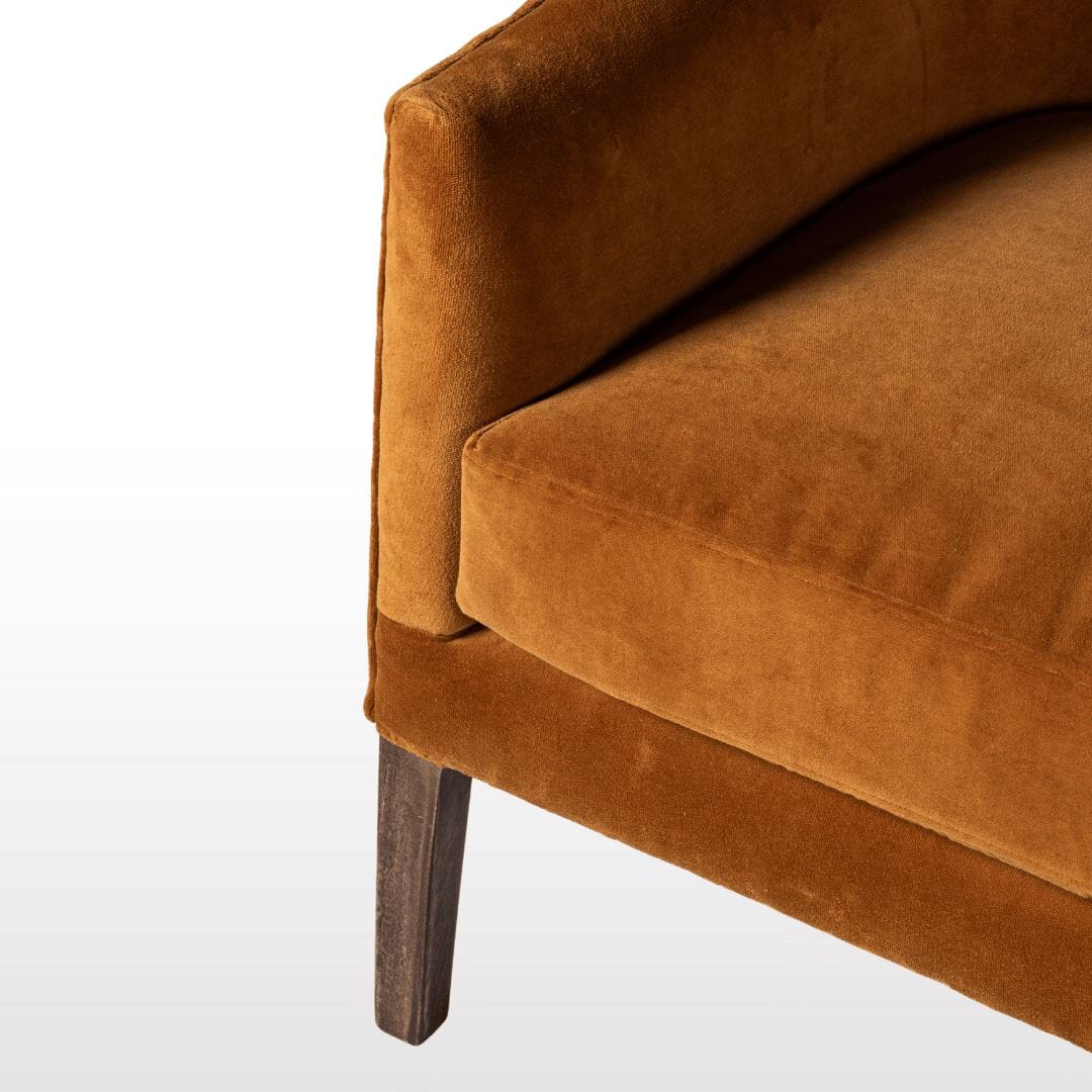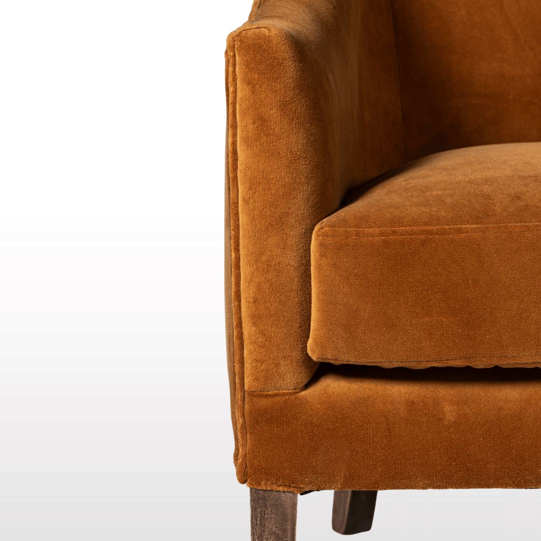 This cosy and stylish rust velvet armchair is part of the exclusive Oriana B range, designed by us here in Dublin, Ireland.