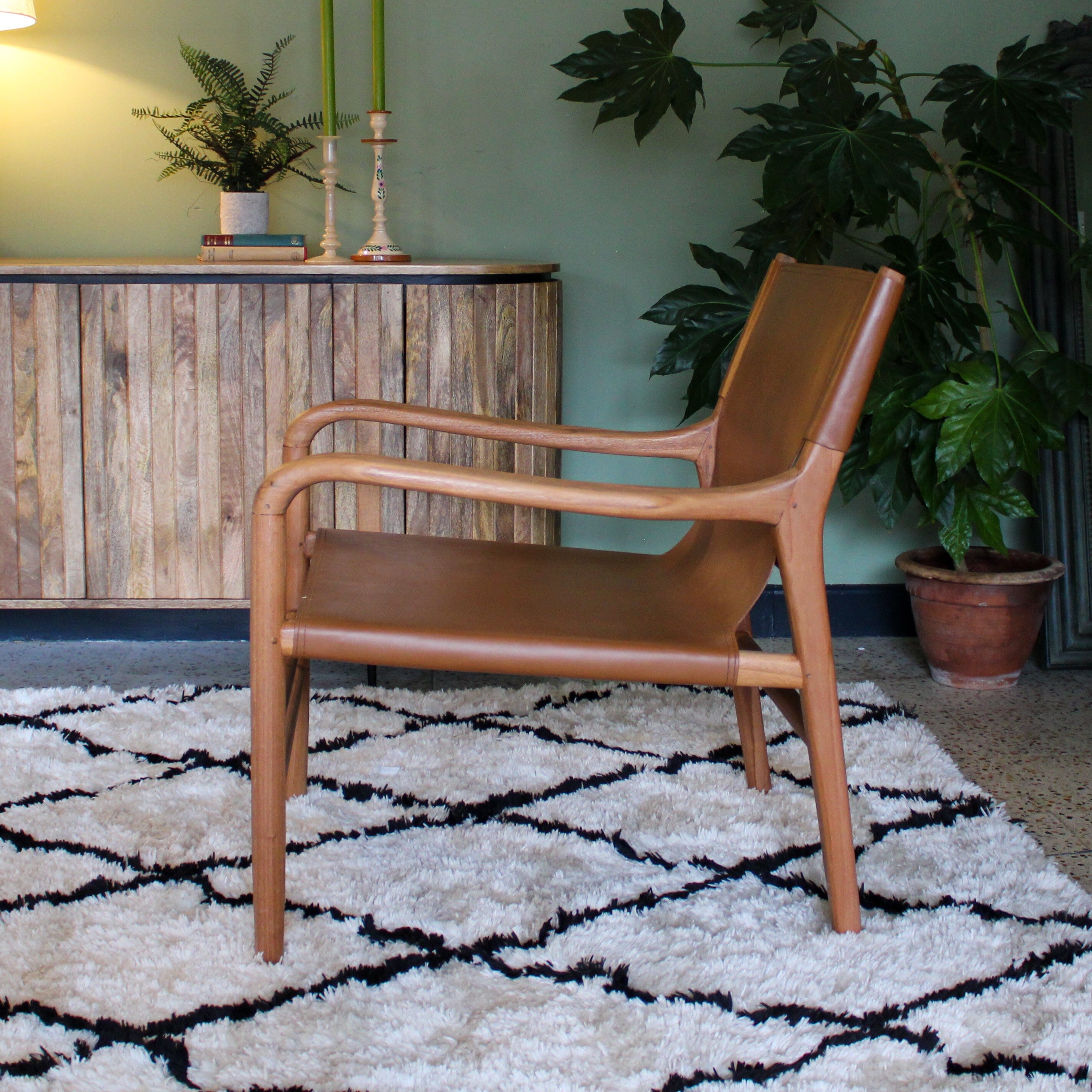 These chairs are really something special. They have an unrivalled elegance of shape which is perfectly completed by the use of beautiful materials. The teak frame is warm with a gracious grain running through it that lends itself without question to the beautiful bent wood arms and fine detailing. To complement this is a taut yet comfortable leather seat suspended perfectly between the arms which will age beautifully in time to develop a rich patina. This is a chair that would look fabulous as a pair opposite a deep Chelsea Sofa.