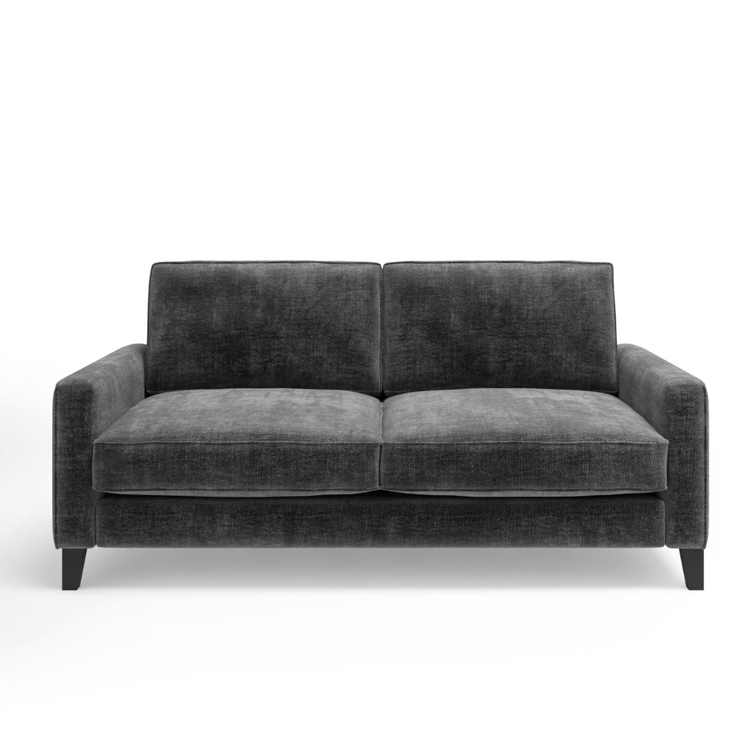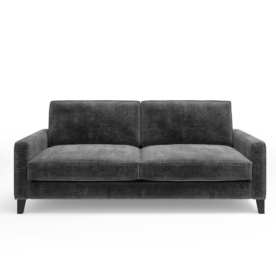 The Chelsea Sofa is an homage to comfort and style! This beautiful sofa offers fantastically comfortable seating courtesy of the deep foam cushions and gorgeously enveloping waffle chenille upholstery. The squared off shape provides instant style appeal brought to life by the beautifully cushioned arms which are finished with an inset panel and the large piped cushions. This is a sofa to sink into and relax! The legs are a dark tapered burcott wenge which elevates this sofa providing a nice shadow gap to the floor.