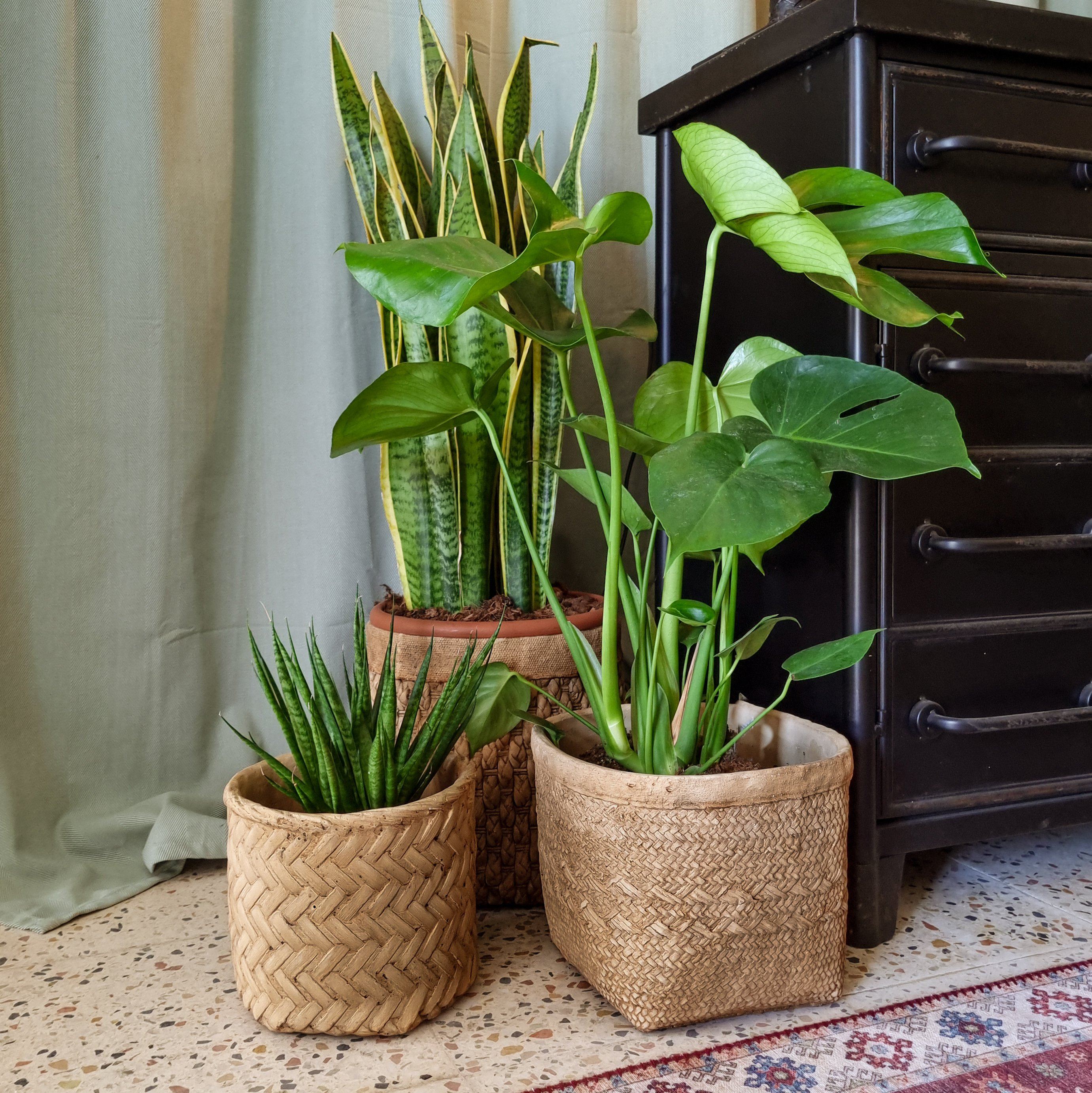 This delightful trio of plant pots are perfect accompaniment to your greenery, indoor or outdoor! Dress up your home or patio plants with the braided pattern to mimic trendy woven and rattan, but rest assured as these cement versions will survive the hardy Irish weather. The medium size sits neatly on a square base and has an opening of 20cm. Pair with the Large pot and Medium pot for maximum effect!